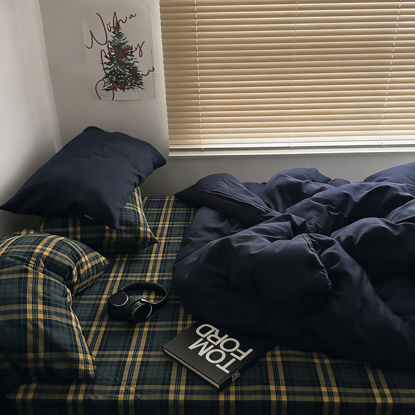 当前位置: 91家纺网 > 商品网购 > 床品套件 > 四件套 > 全棉普通四件套 > 柚可家居 2026新款色织水洗棉全棉四件套-又见深蓝 又见深蓝(格子+藏蓝)