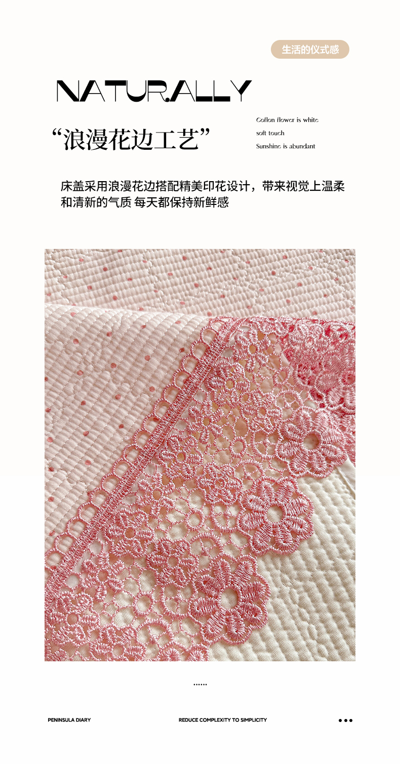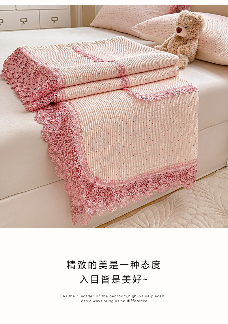 (总)栩裕纺织 2026新款全棉双层纱棉花边榻榻米炕盖款,波点粉,波点灰,波点绿,波点米,波点杏,波点紫,组合图仅供参考