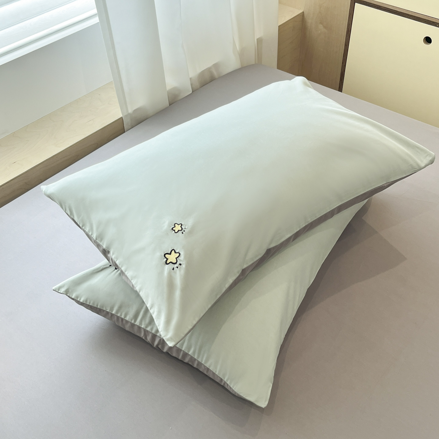 (总)泽西家纺+V17798841158发大图 2026新品全棉13376刺绣简约星星枕套,宾利蓝+灰,豆绿+高级灰,牛仔蓝+奶茶,浅绿+豆绿,浅喜粉,浅喜粉+暖豆沙,晴空蓝+牛仔蓝,水雾蓝,微微紫+香芋紫,西柚橙+银河灰,银灰+西柚橙