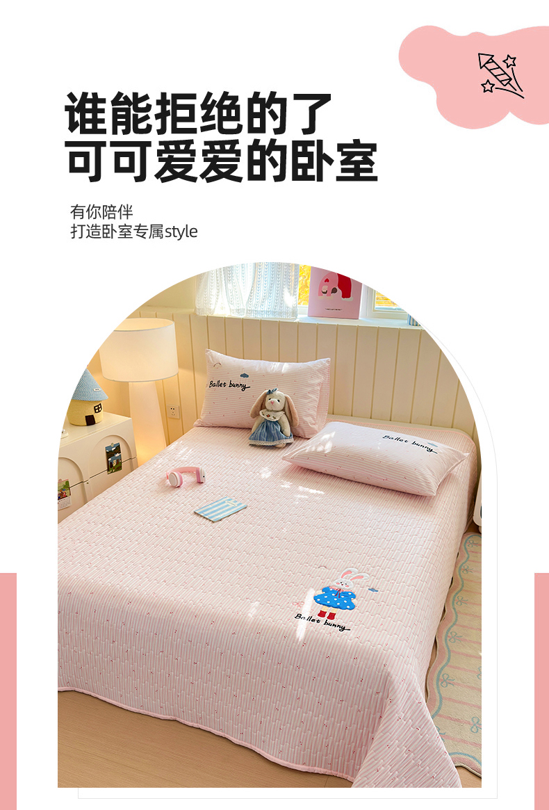 • 91家纺网 家纺一手货源 找家纺 娜娜 2025新款全棉夹棉多功能床盖 樱桃粉兔(全棉床盖)