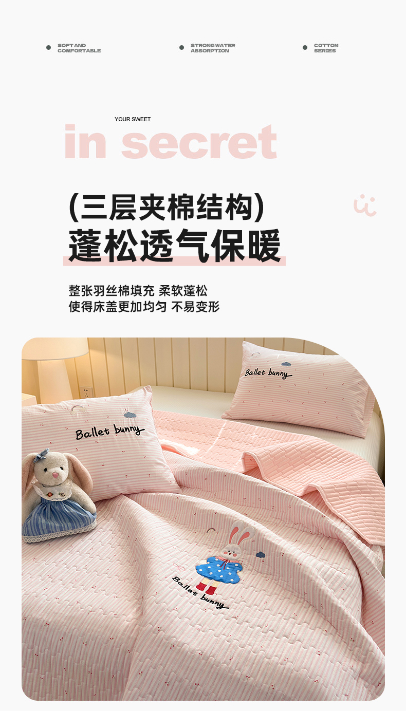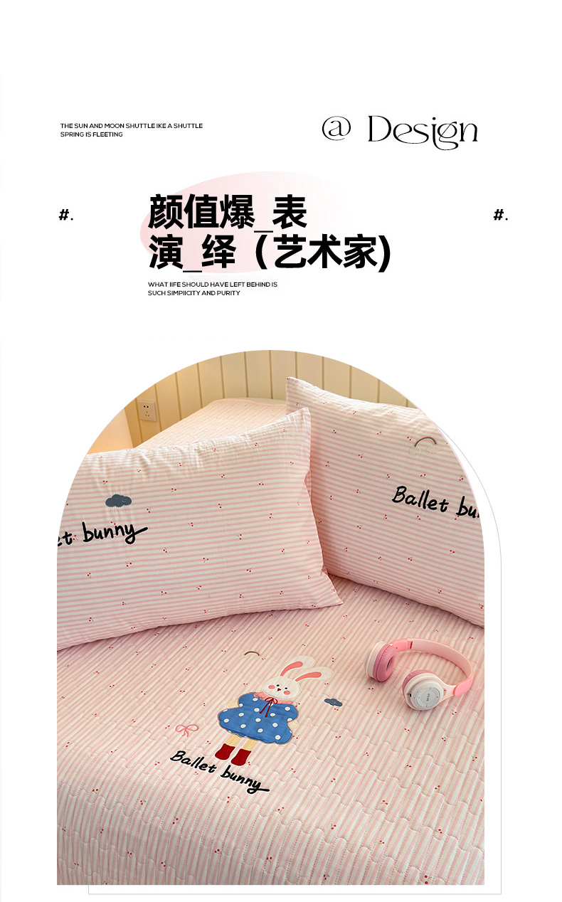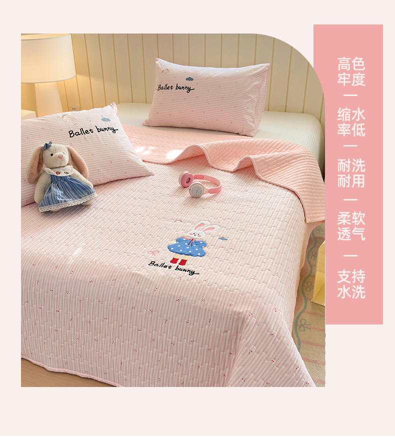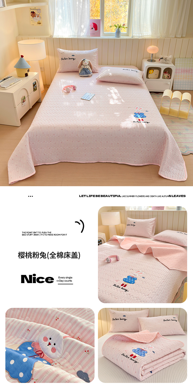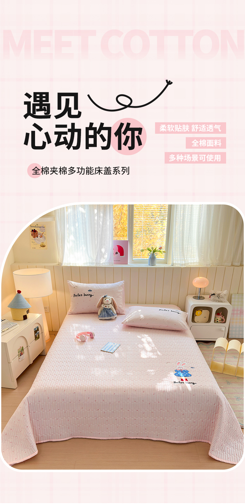 娜娜 2025新款全棉夹棉多功能床盖 樱桃粉兔(全棉床盖)
