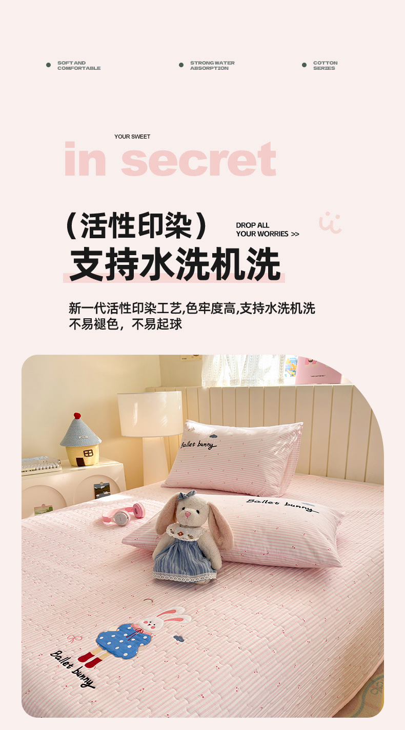 (总)娜娜 2025新款全棉夹棉多功能床盖,爱心绿免(全棉床盖),快乐女孩粉(全棉床盖),小飞象(全棉床盖),樱桃粉兔(全棉床盖),组合