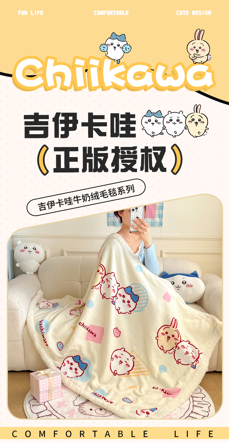 商品名称:博雅 2025新款吉伊卡哇正版授权牛奶绒毛毯 专版开心吉伊卡哇