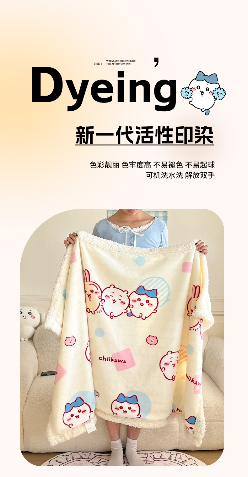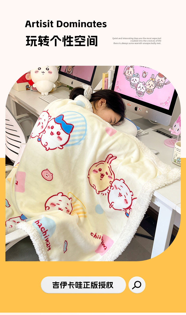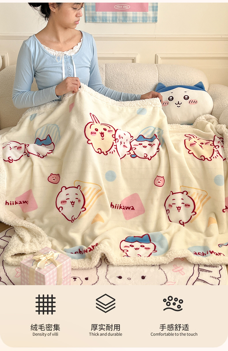 (总)博雅 2025新款吉伊卡哇正版授权高克重牛奶绒羊羔绒毛毯-开心吉伊卡哇,开心吉伊卡哇(含标)