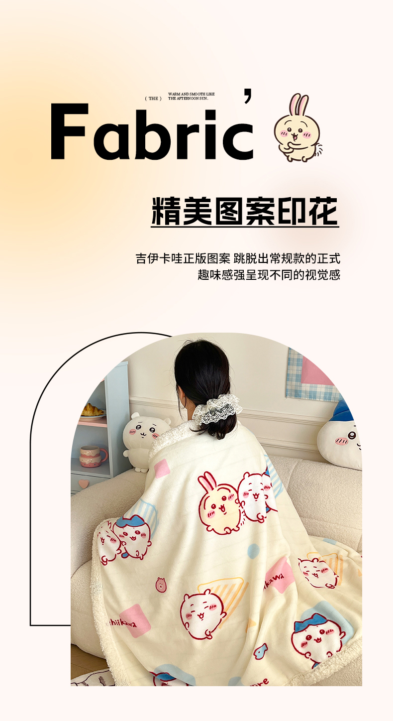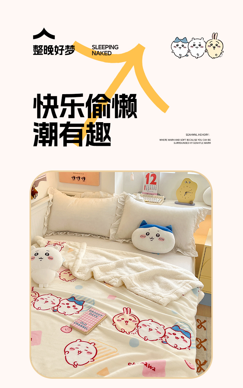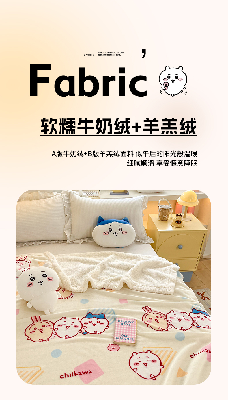 (总)博雅 2025新款吉伊卡哇正版授权高克重牛奶绒羊羔绒毛毯-开心吉伊卡哇,开心吉伊卡哇(含标)