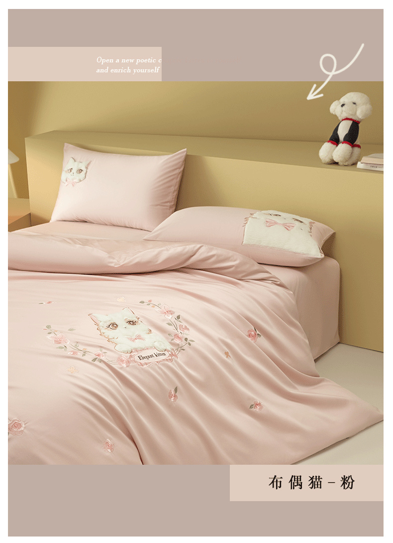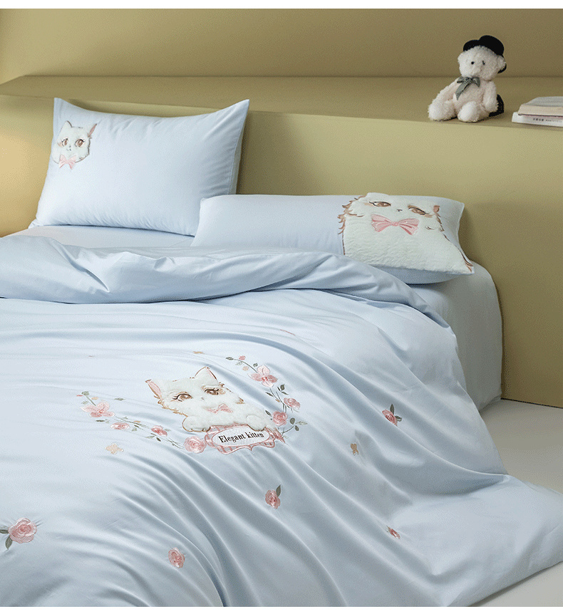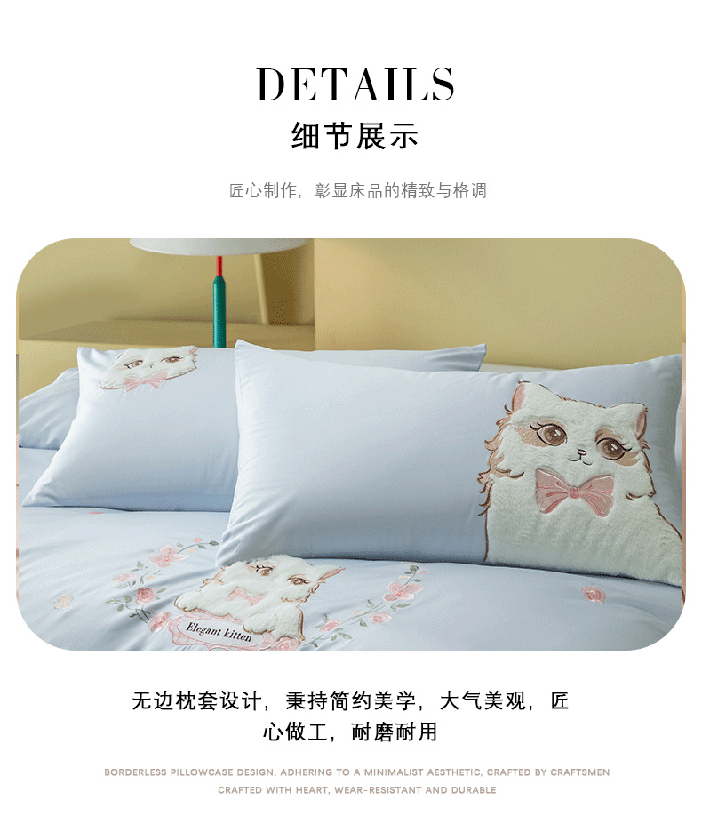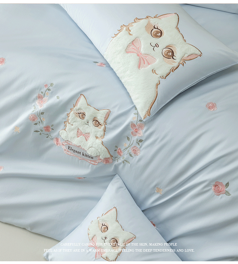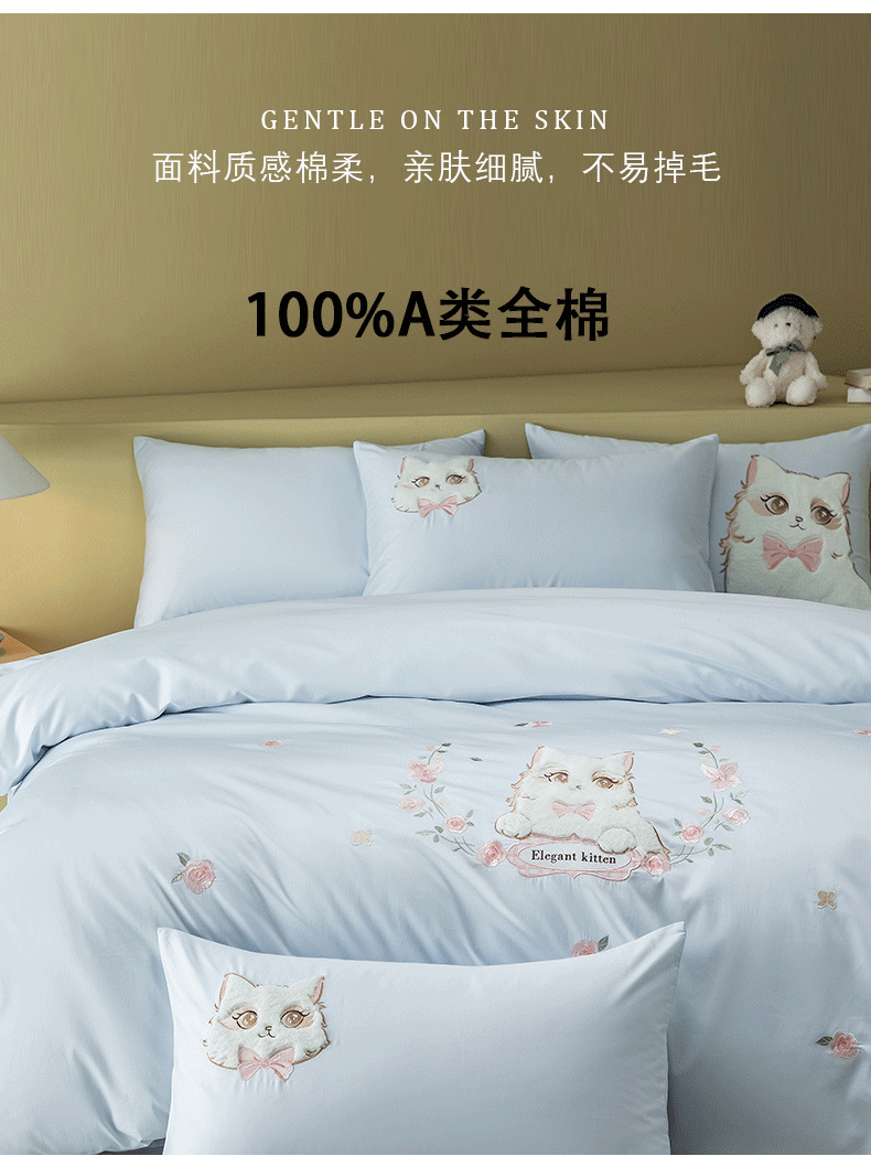 当前位置: 91家纺网 > 商品网购 > 床品套件 > 四件套 > 全棉普通四件套 > 618家纺 2026新款A类100支全棉纯棉绣花四件套-布偶猫 布偶猫-蓝