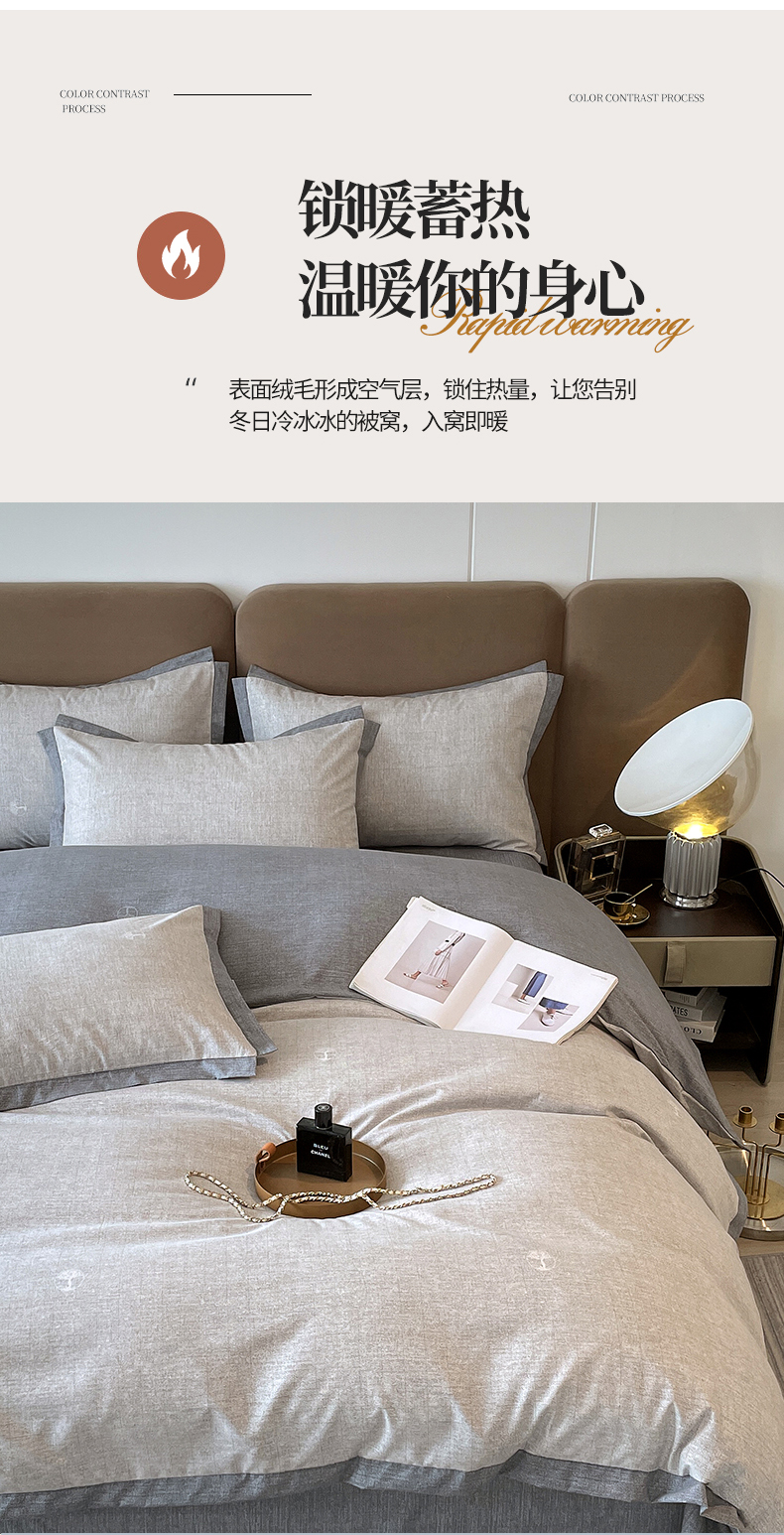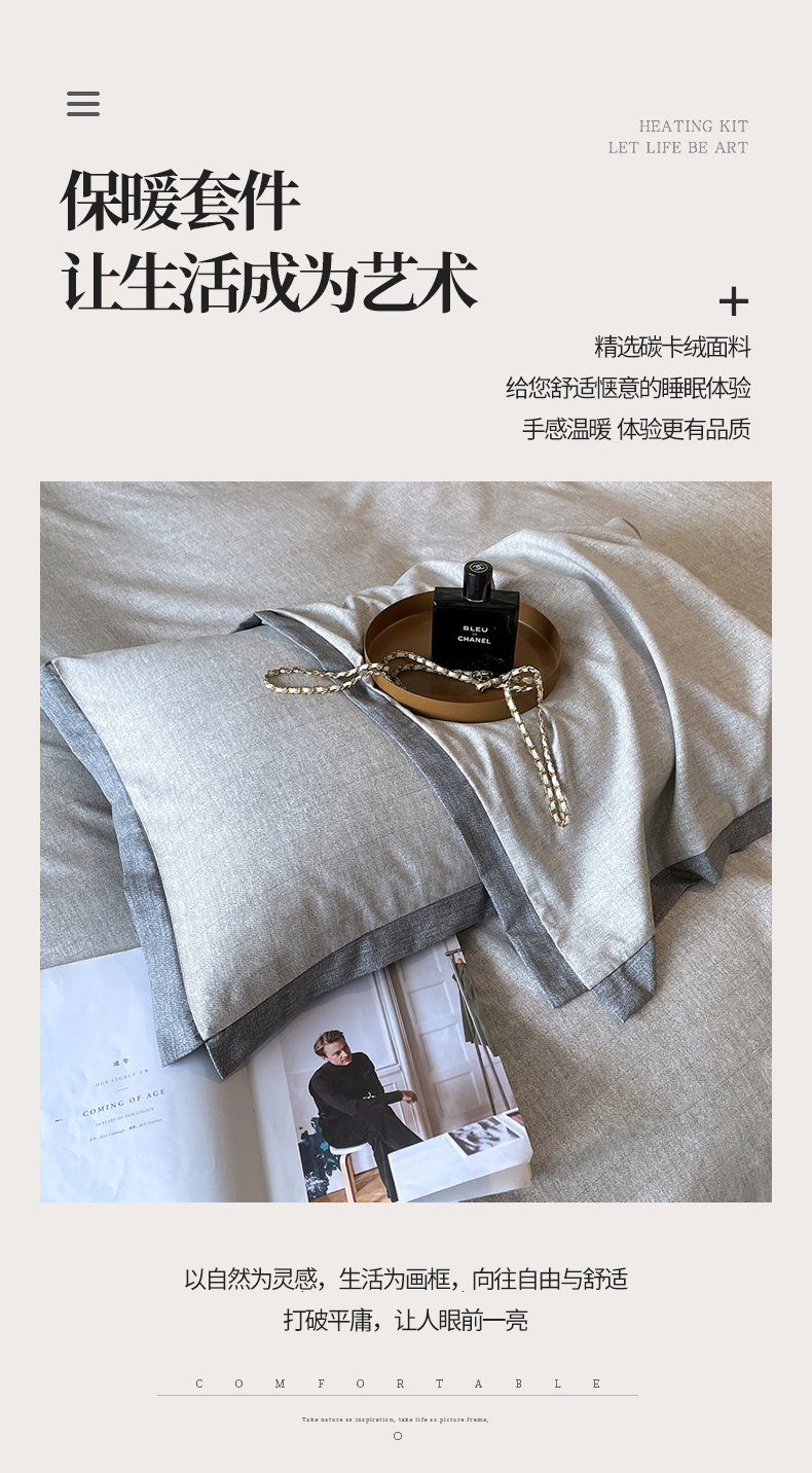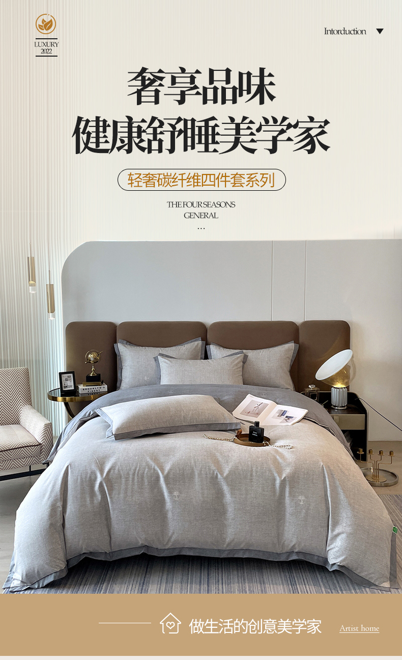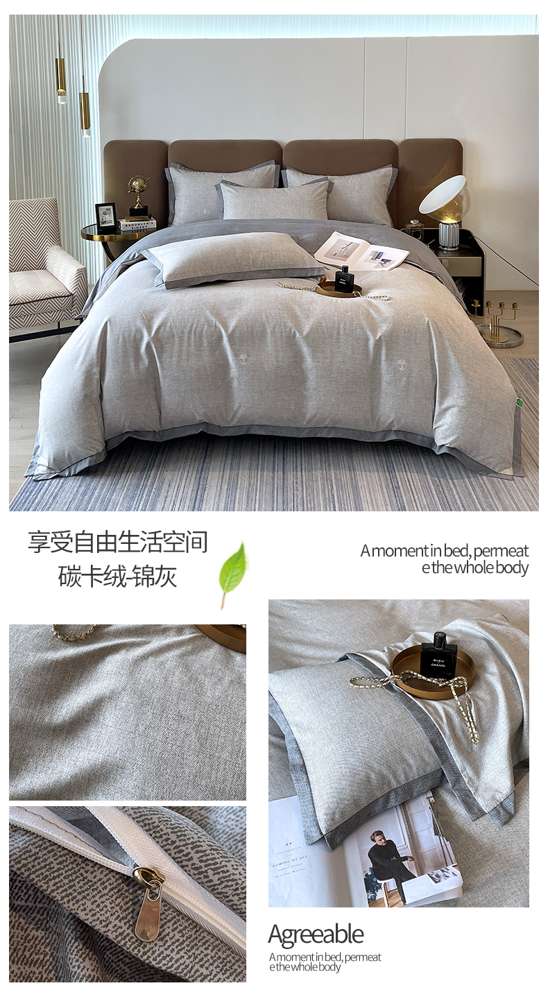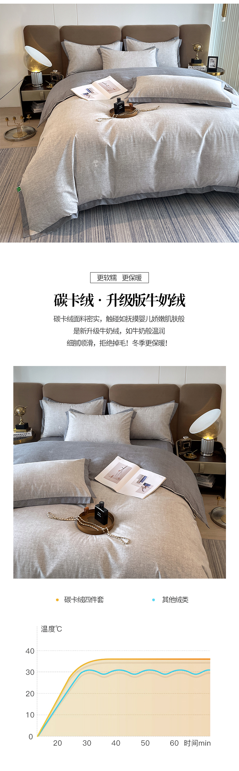 恩和家纺 2026新款森能量碳纤维环保四件套系列 碳卡绒-锦灰