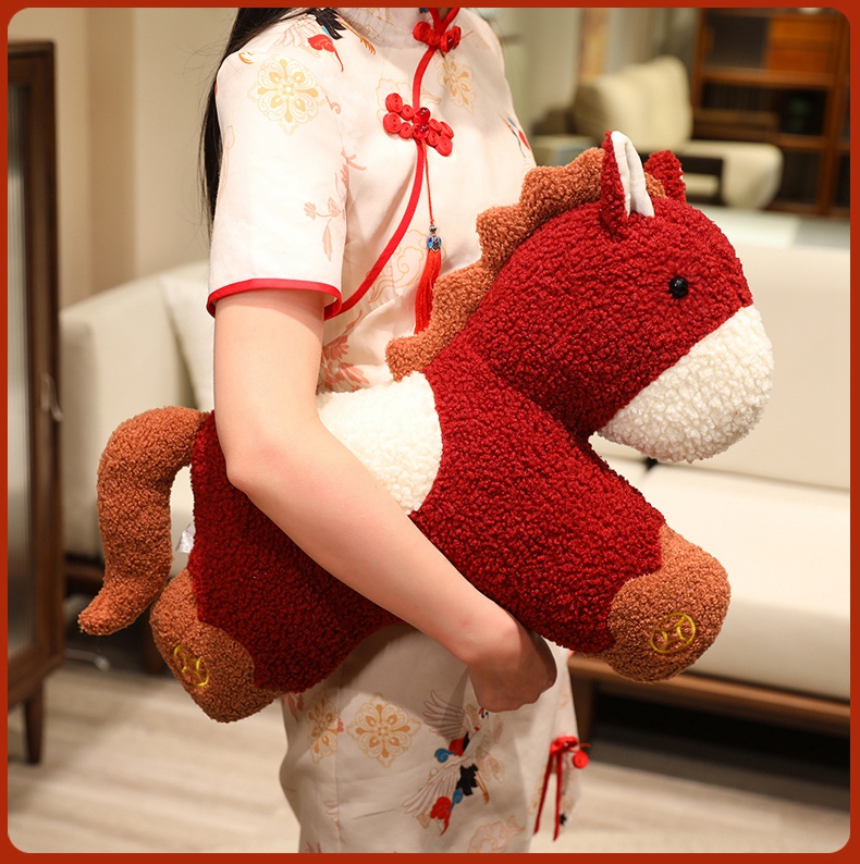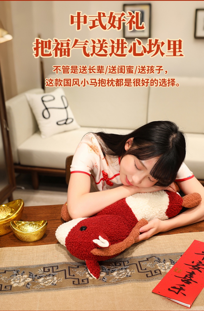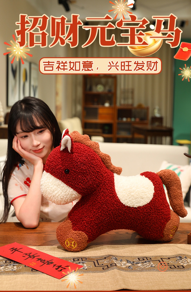 当前位置: 91家纺网 > 商品网购 > 居家日用 > 靠垫/抱枕 > (总)仟亿莱 2026新款中国红元宝小马毛绒玩偶抱枕