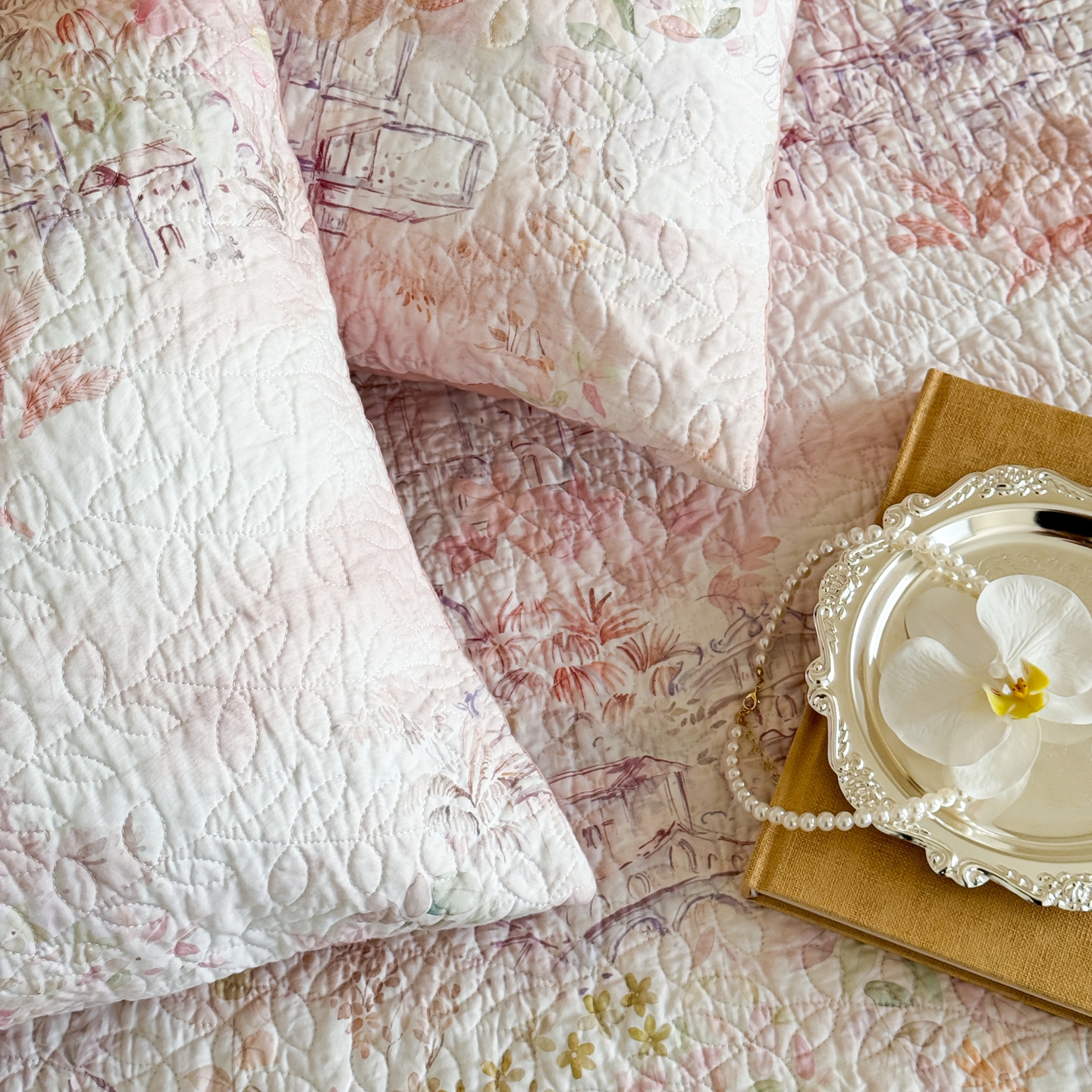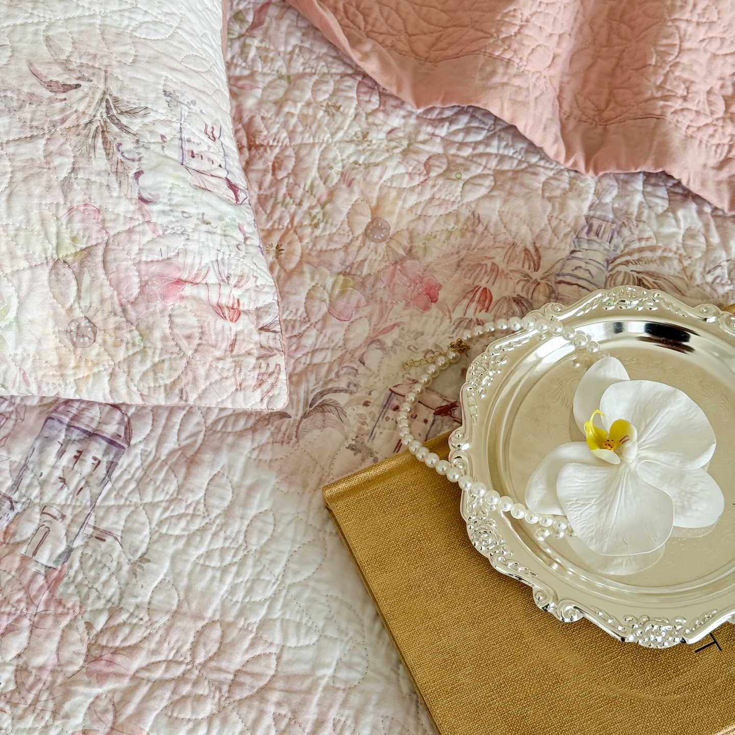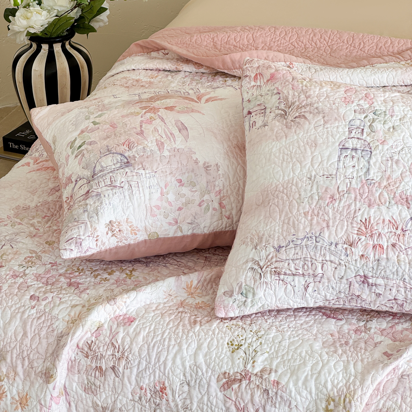 床盖工厂店 2026新款高端活性数码工艺双面全棉棉花床盖三件套 法兰庄园-粉