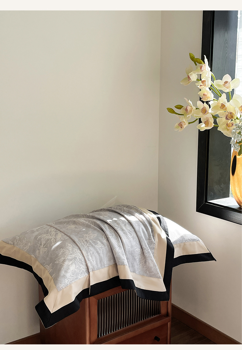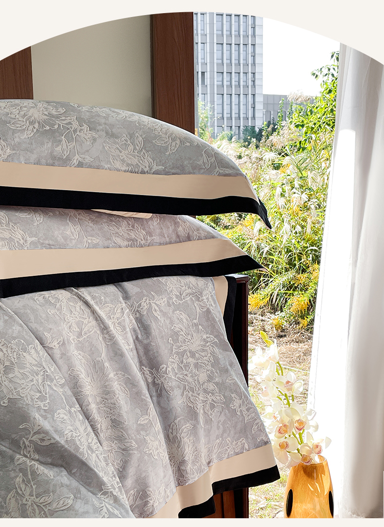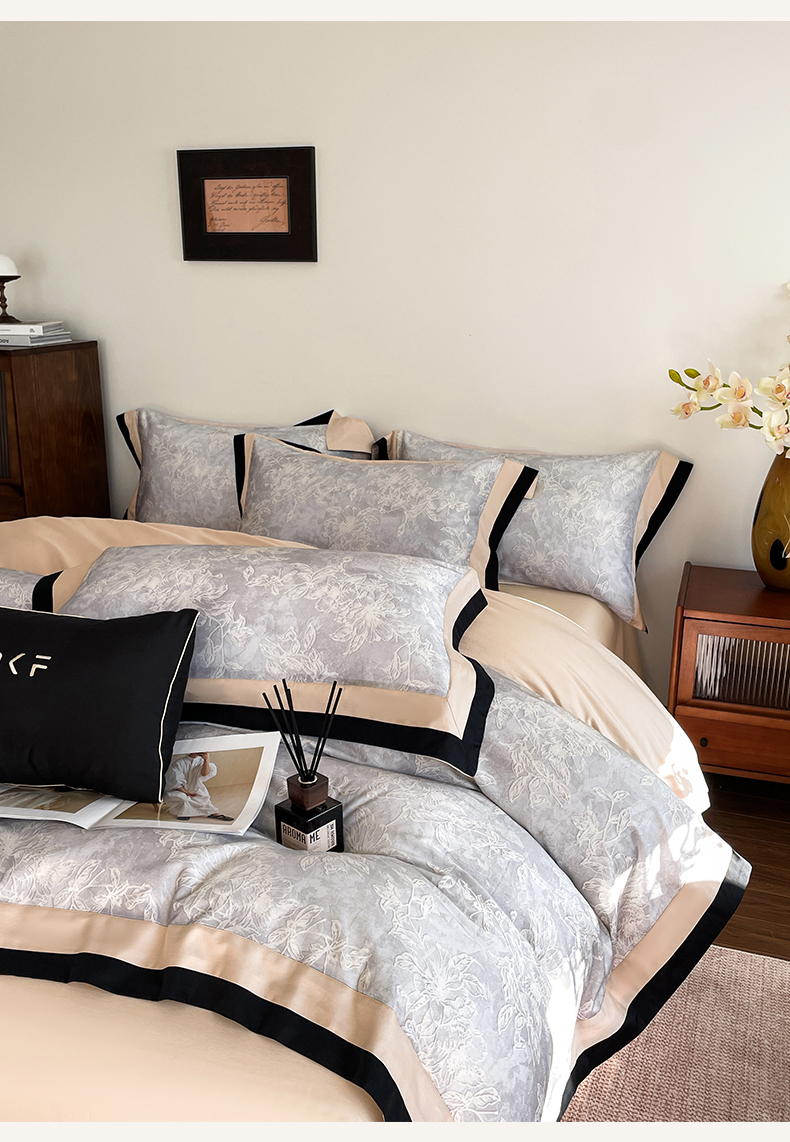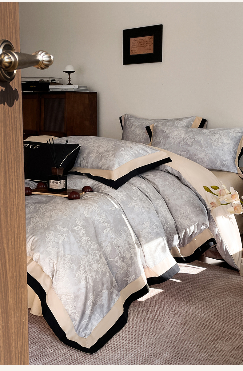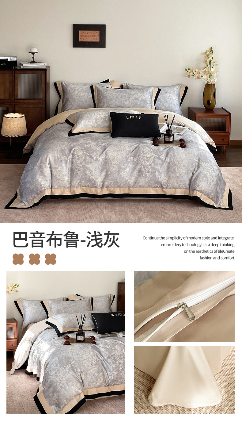 蓝米卡夫 2026春季新款-60S长绒棉数码印花贡缎双拼角系列四件套-巴音布鲁(礼盒) 巴音布鲁-浅灰