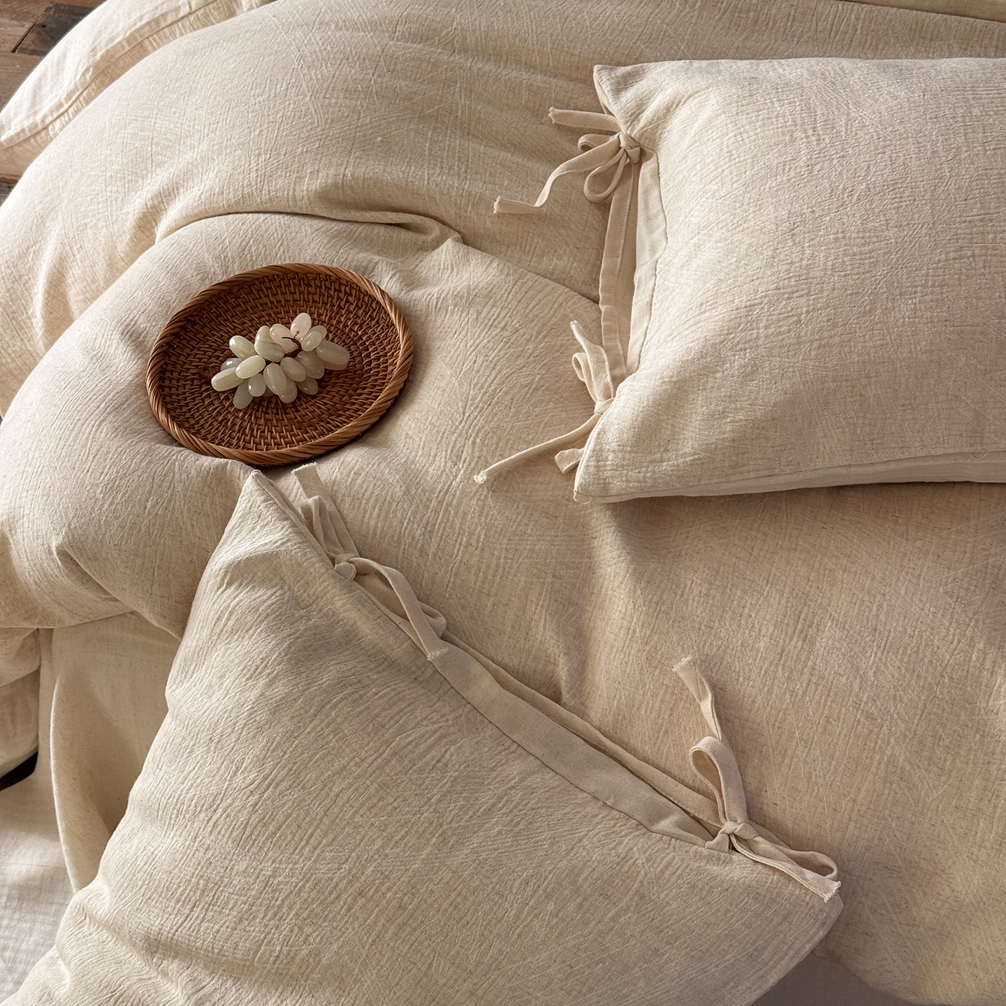 (总)爱丽丝 2026新款色织提花棉麻四件套-鎏光系带款