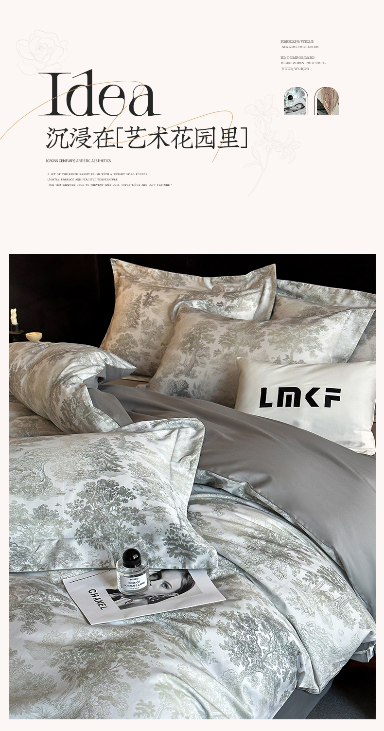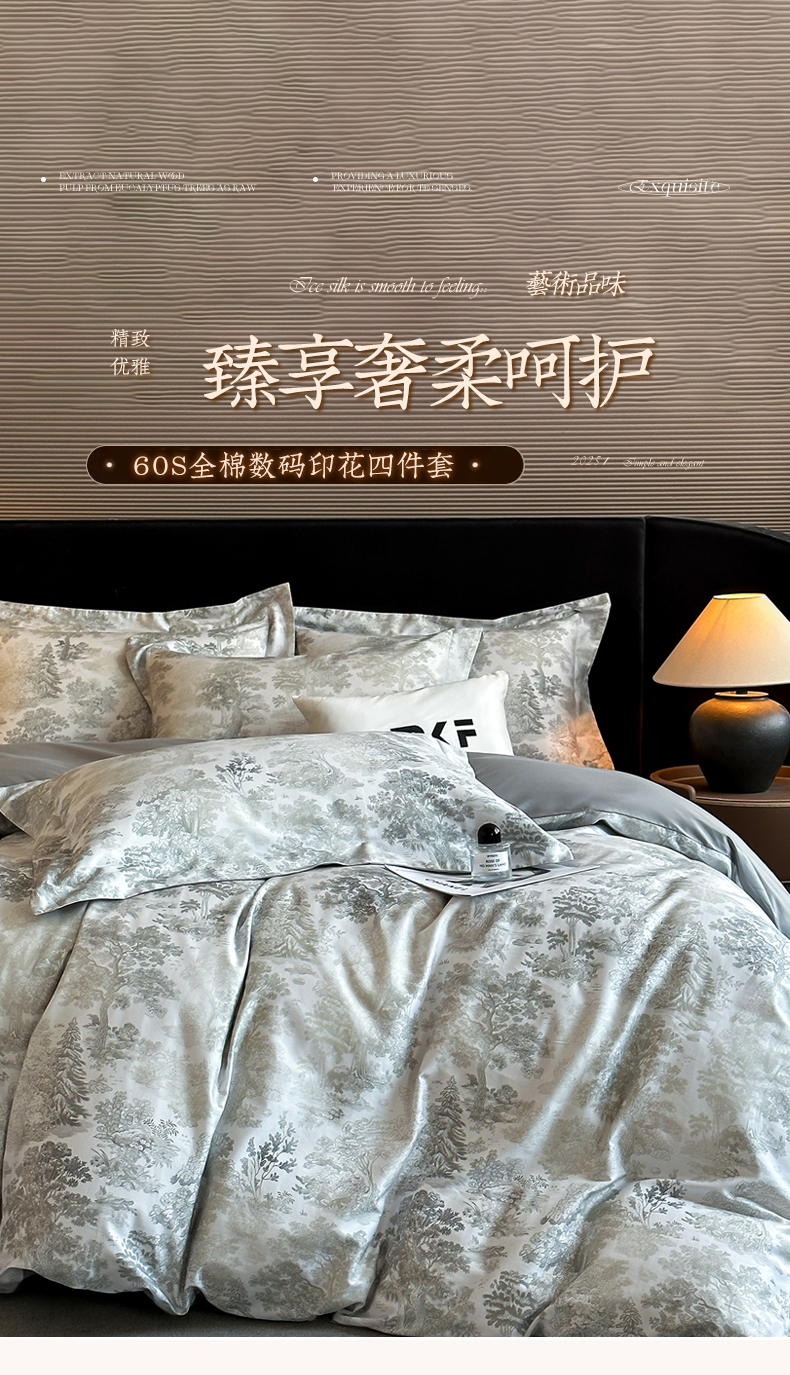 蓝米卡夫 2026春季新款-60S长绒棉数码印花贡缎系列四件套(礼盒) 塞纳森遥