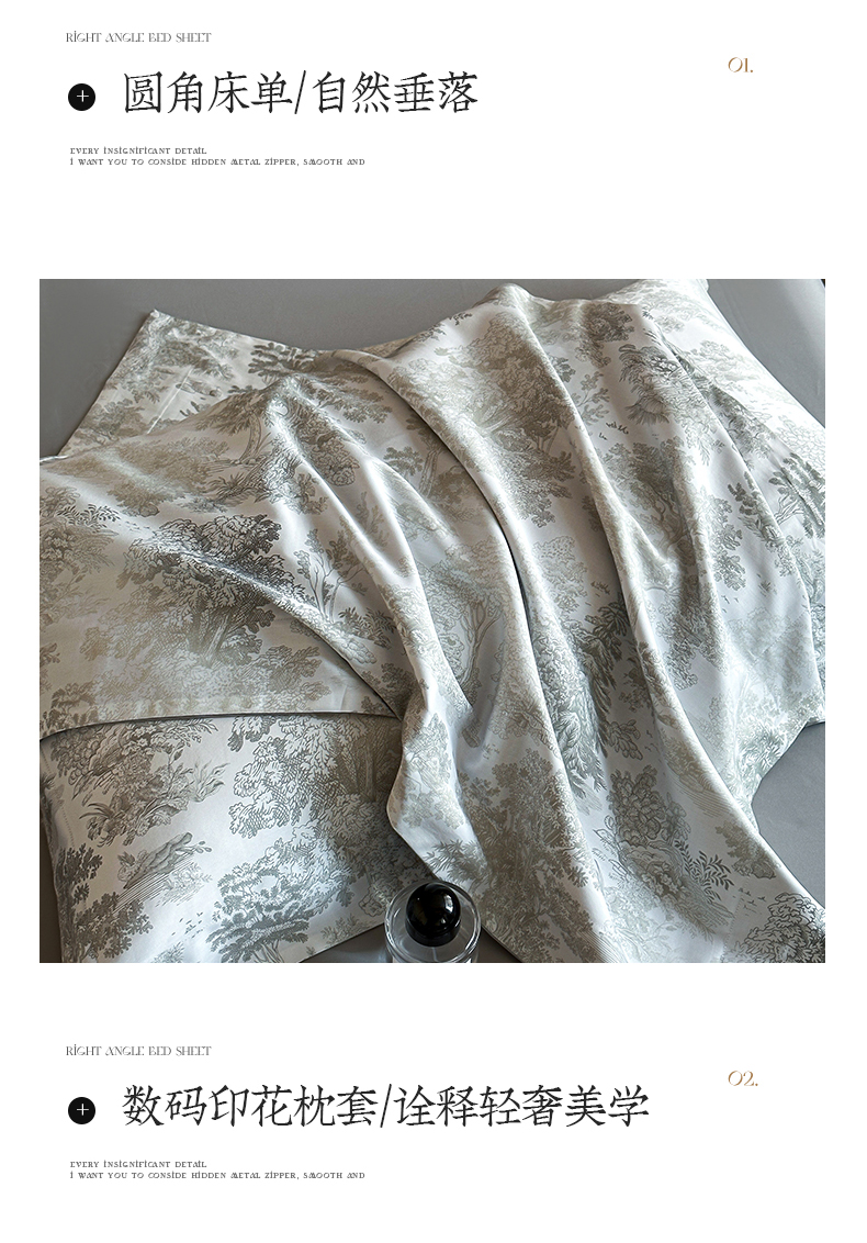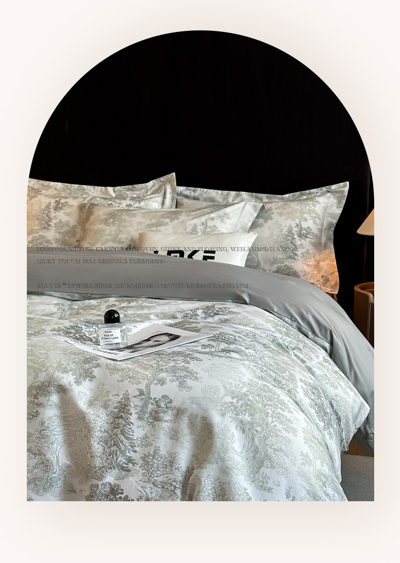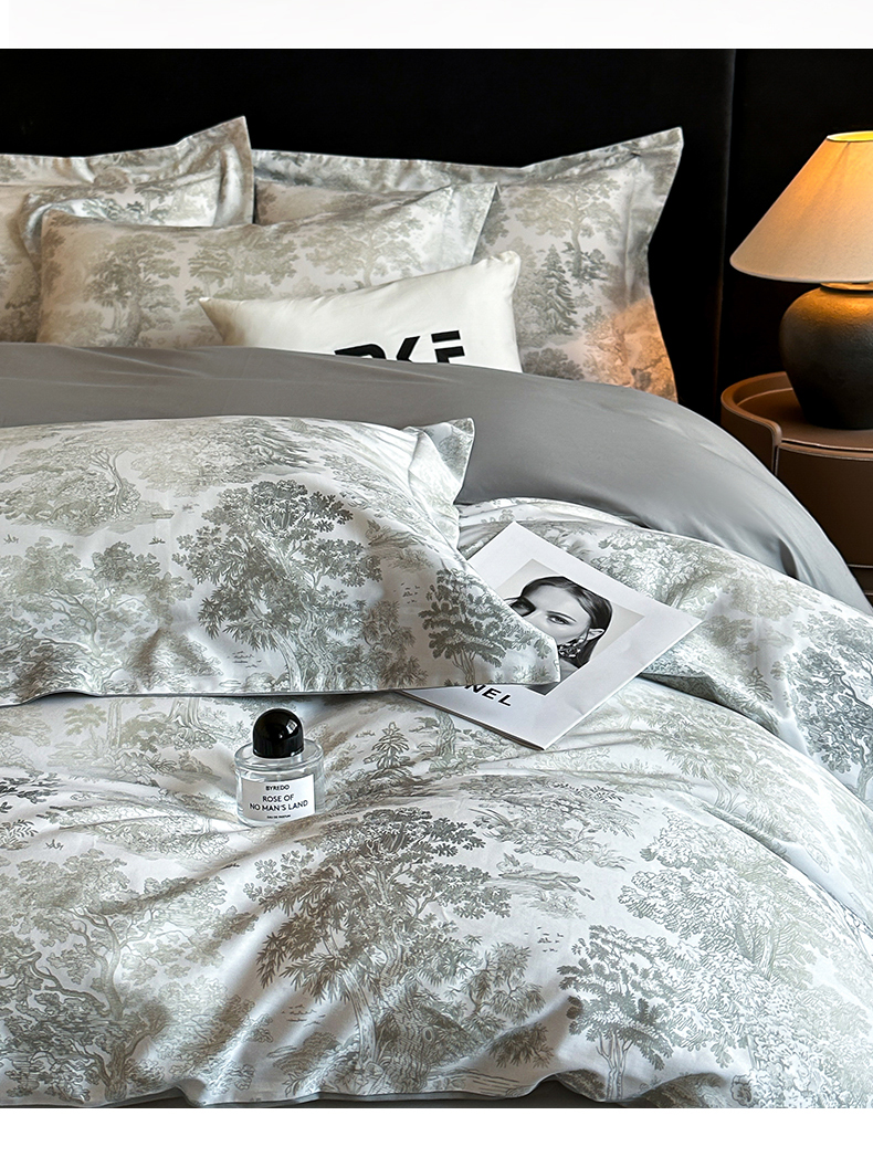 商品名称:蓝米卡夫 2026春季新款-60S长绒棉数码印花贡缎系列四件套(礼盒) 塞纳森遥