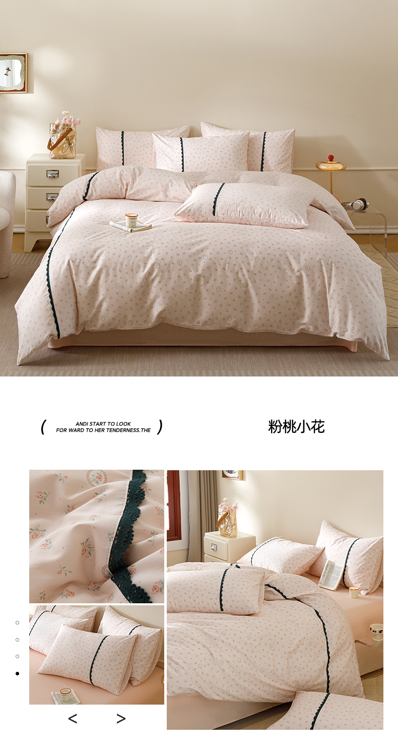 当前位置: 91家纺网 > 商品网购 > 床品套件 > 四件套 > 全棉普通四件套 > 简宜家居(朝初家纺) 2026新款13070全棉纯棉40支斜纹蕾丝四件套 粉桃小花