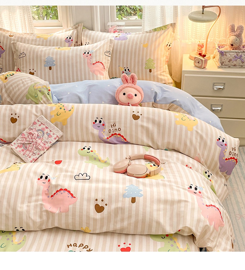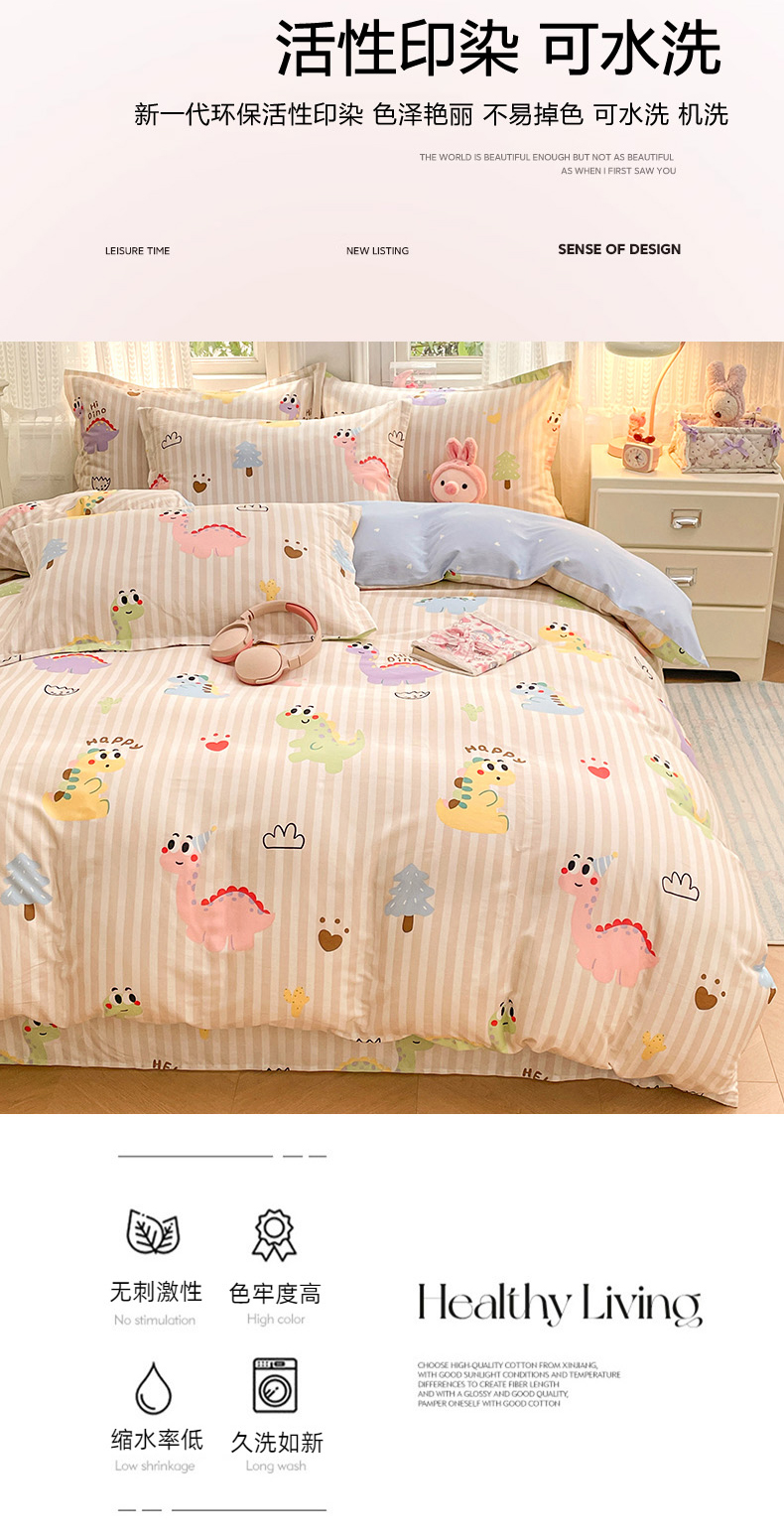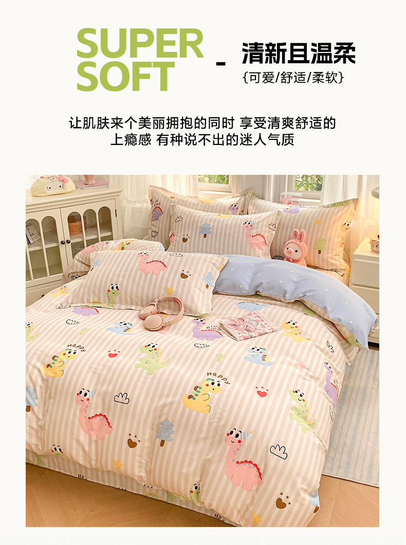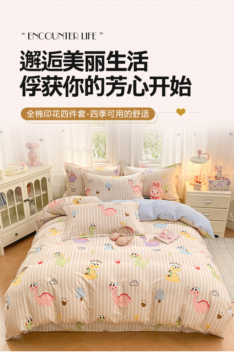 • 91家纺网 家纺一手货源 找家纺 世爵 2026新款全棉纯棉印花小清新单被套单品系列 恐龙乐园