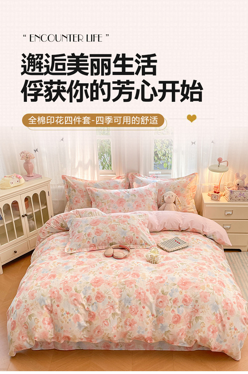 (总)世爵 2026春夏新款全棉纯棉印花小清新四件套,艾薇儿,海纳百川,度假时光,北欧映像,护花使者,布朗熊,风的印季,城南花开,花色伊人,花样年华,花叶倾城-粉,花叶倾城-蓝,花园兔,吉祥兔,可爱联盟,可爱萌宠,恐龙乐园,恐龙世界,漫步云端,梦里星光-灰,秘境熊宝,妙语花香,墨尔本,木棉花-绿,宁夏花苒,浓情玫瑰,盛夏晚晴,碎花拾影,天空之城,田园小兔,仙本娜,香草之恋,星空印记,尤里卡,宇宙小熊,竹林熊猫
