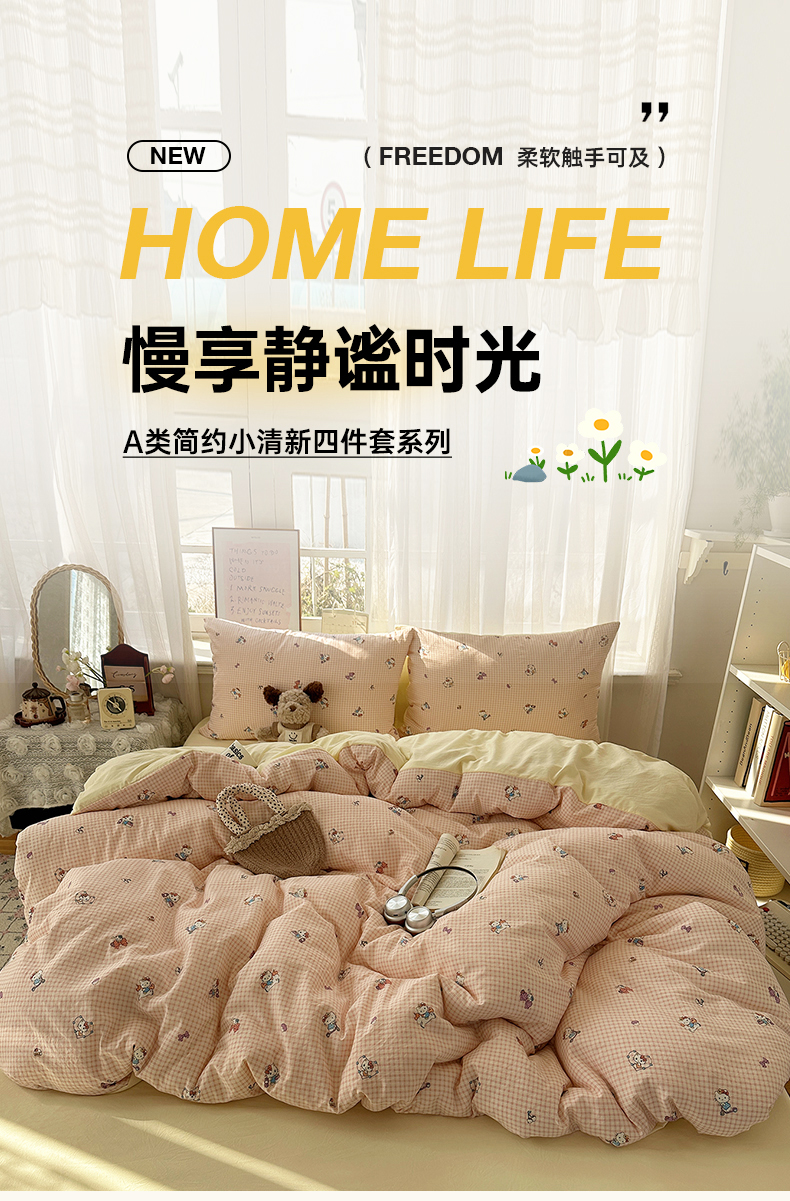 当前位置: 91家纺网 > 商品网购 > 床品套件 > 四件套 > 水洗棉四件套 > 沐芷 2026 【提供买家秀】古法水洗仿棉A类四件套床上用品三件套被套被罩床笠款---第二波 格恋KT猫