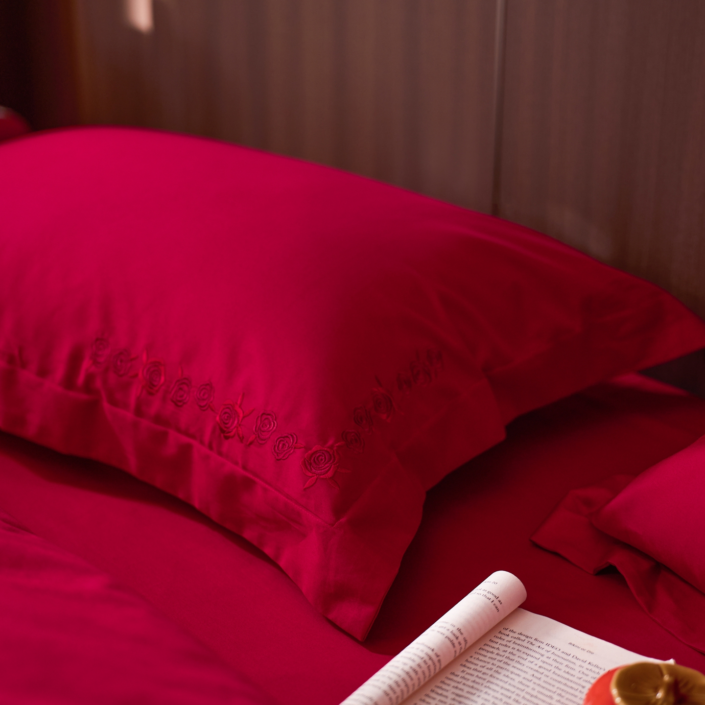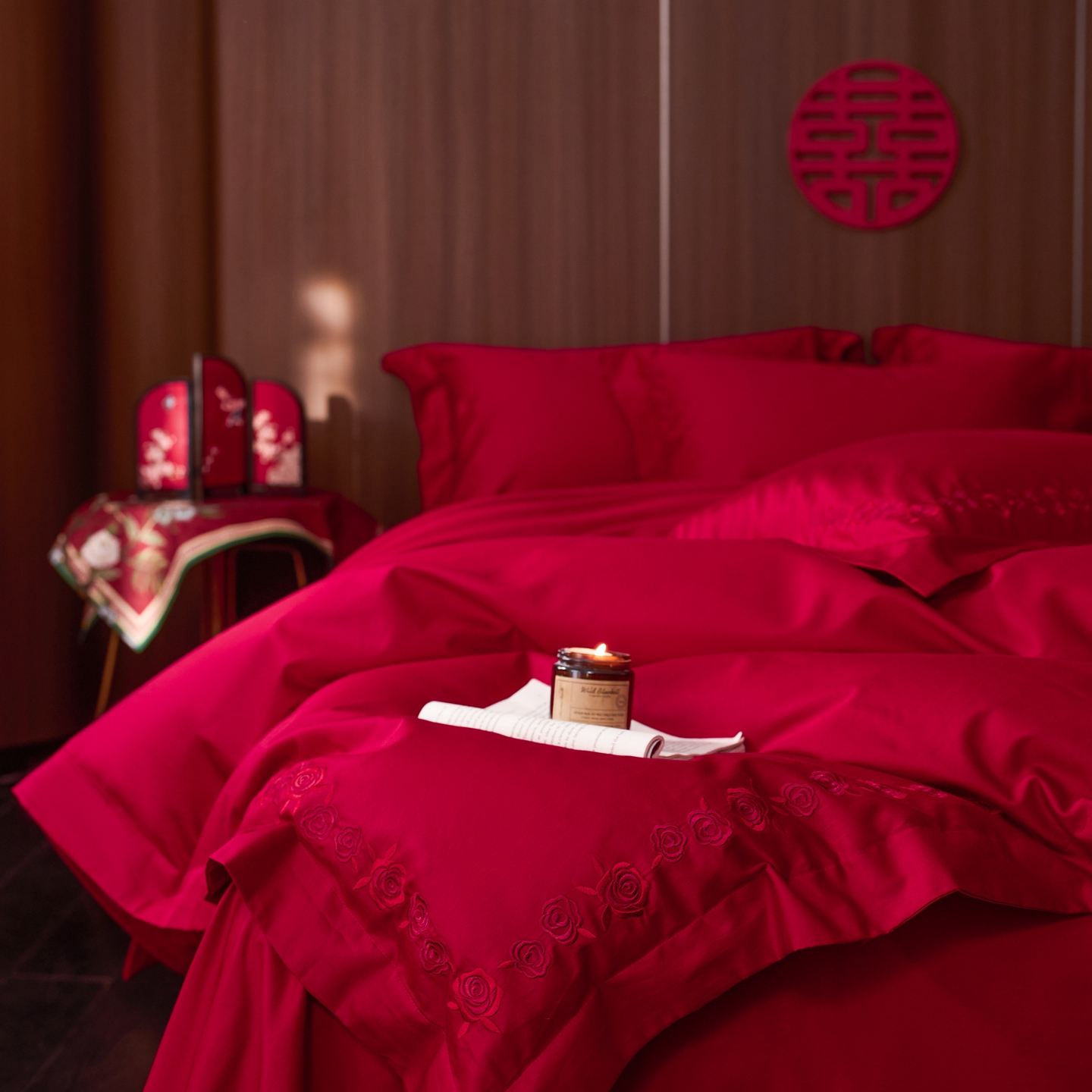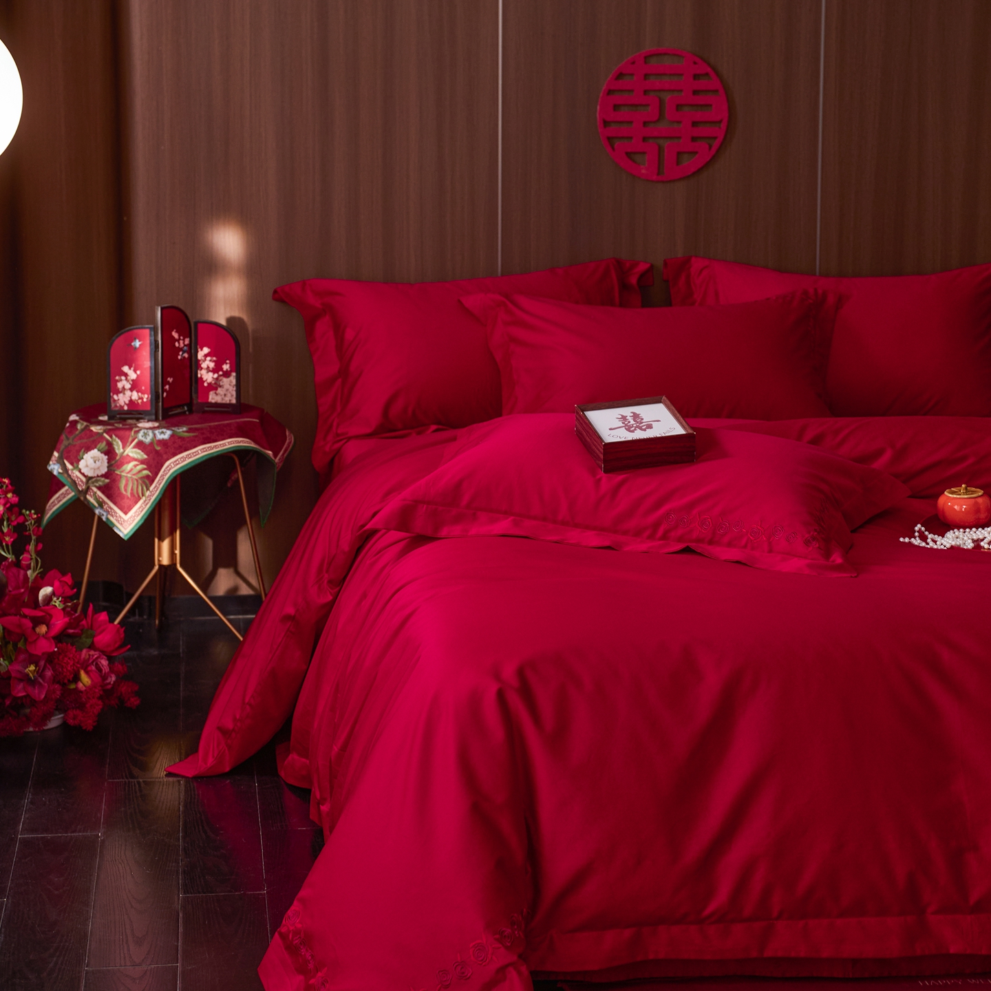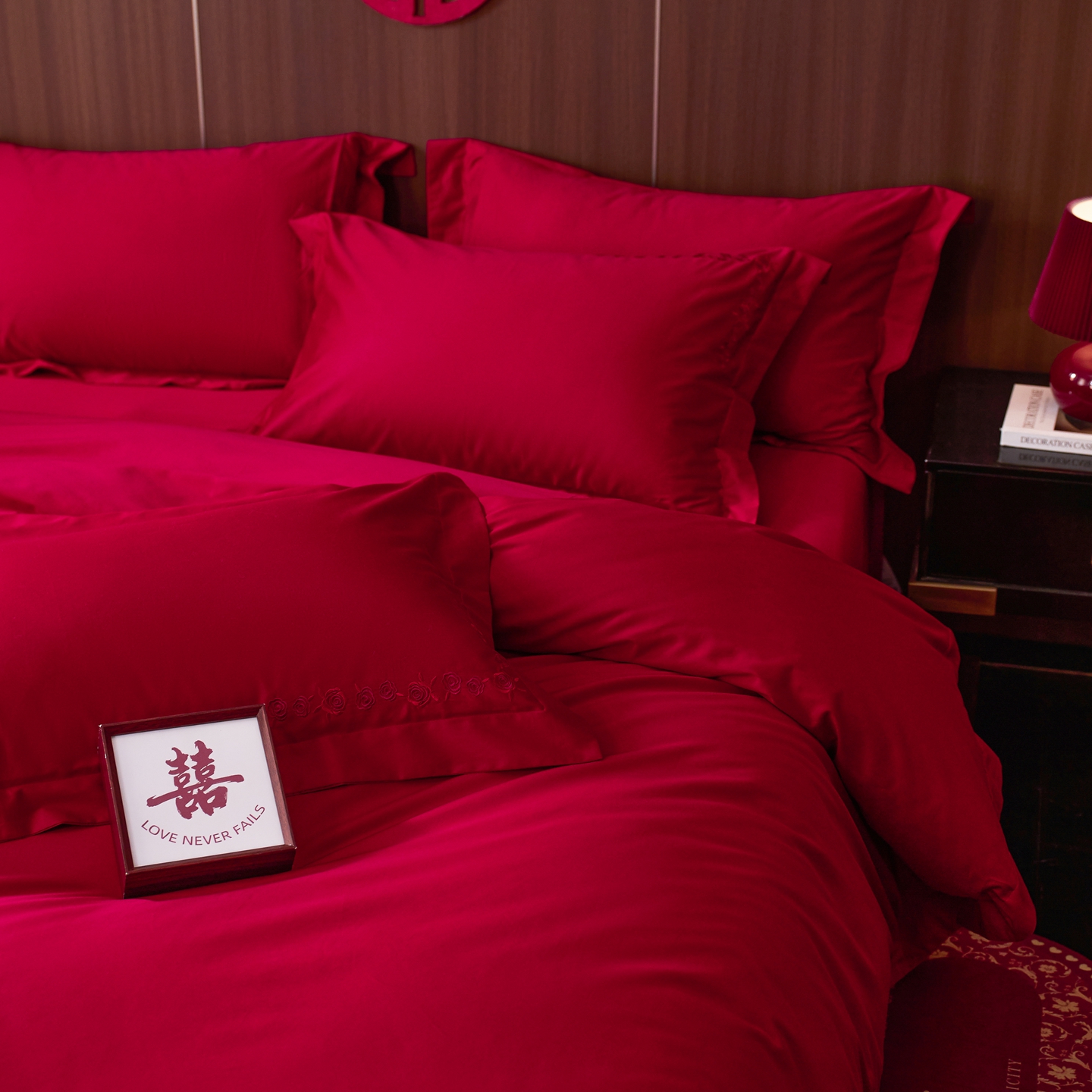 (总)初拾 2026新款贡缎全棉纯棉红色提花简约婚庆四件套—一眼万年