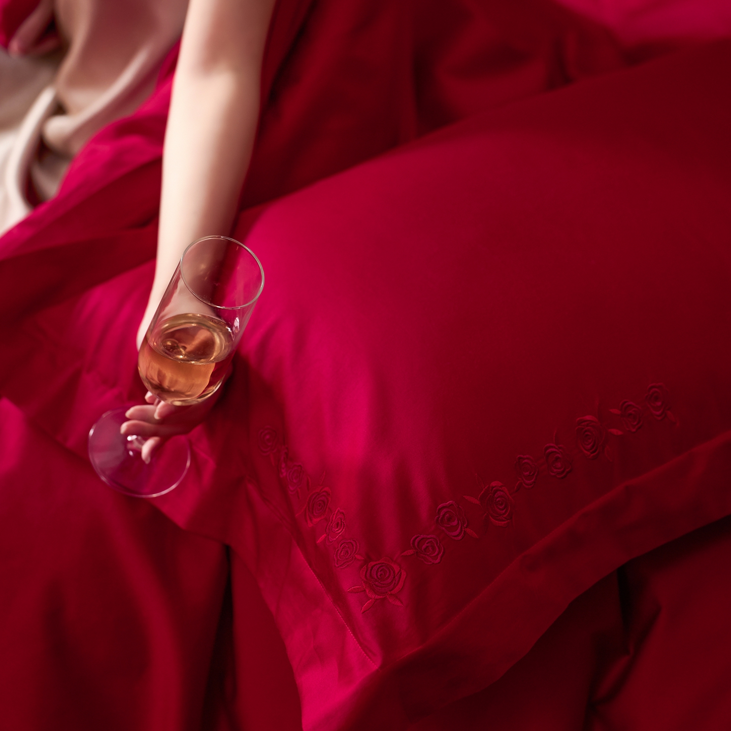 商品名称:(总)初拾 2026新款贡缎全棉纯棉红色提花简约婚庆四件套—一眼万年