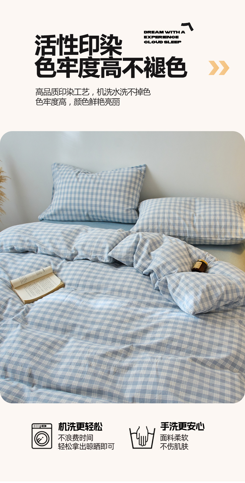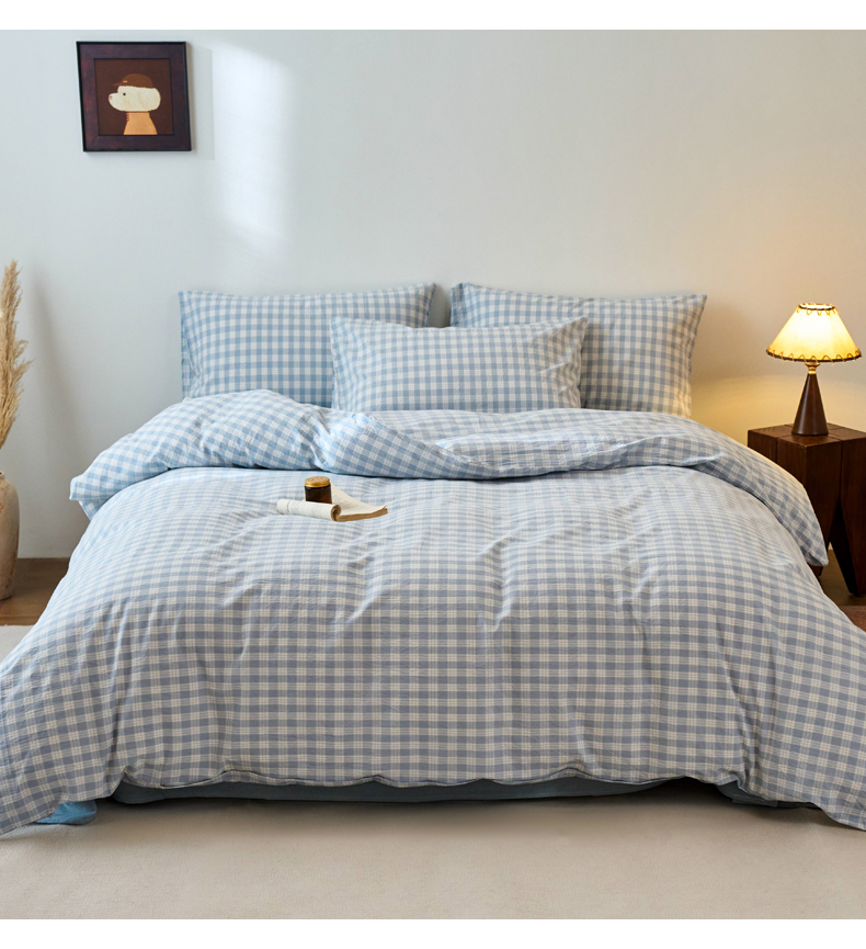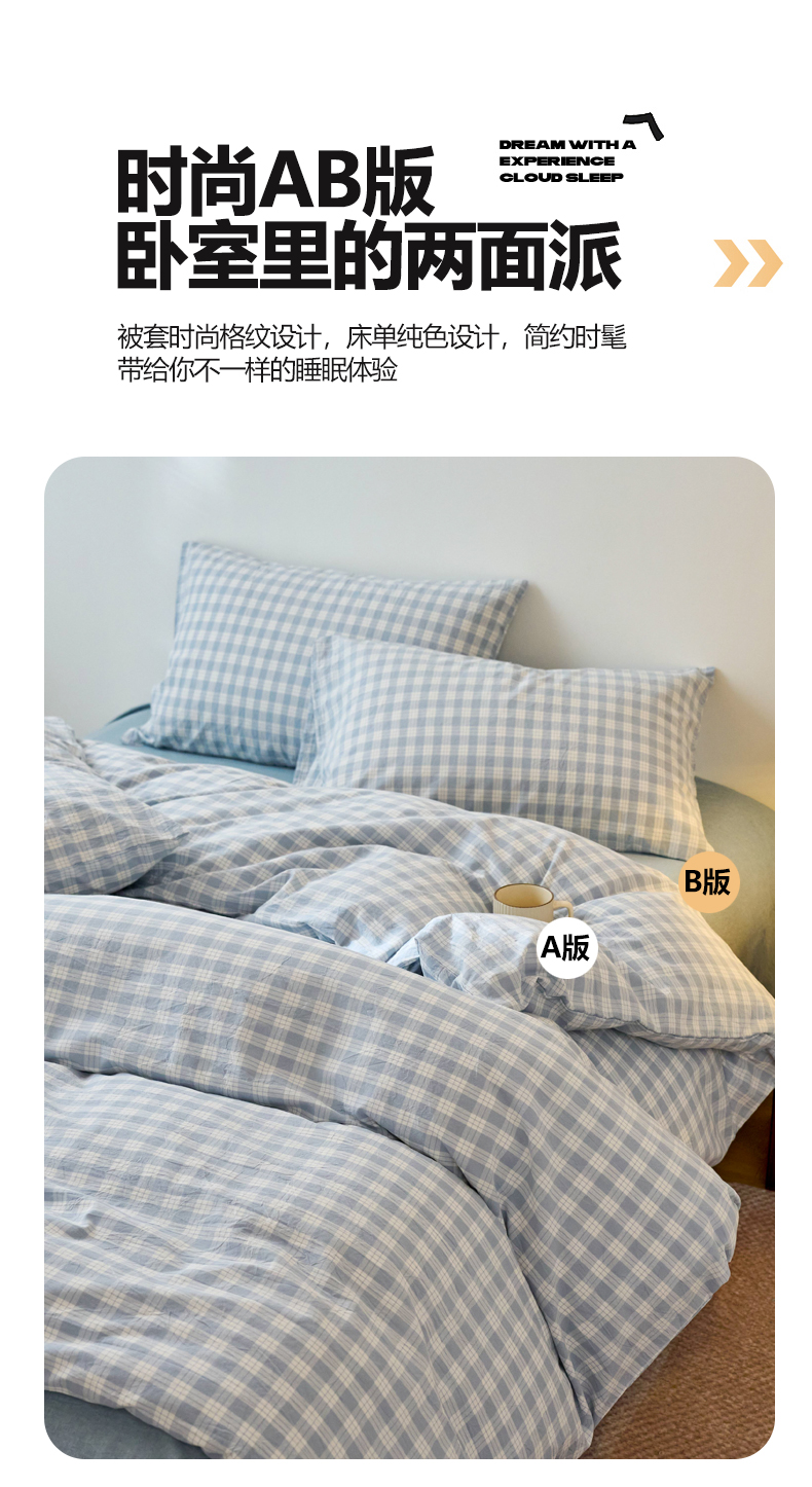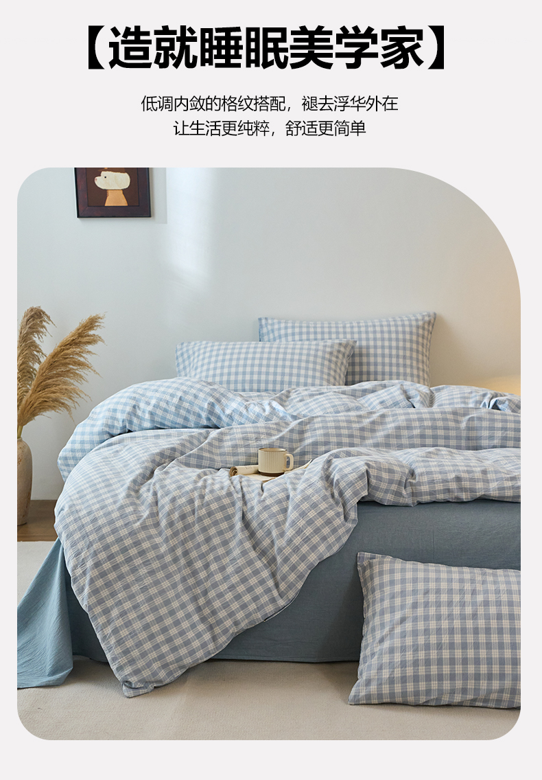 当前位置: 91家纺网 > 商品网购 > 床品套件 > 四件套 > 全棉普通四件套 > 兰紫橙家纺 2026新款全棉纯棉水洗棉四件套方格朵拉 方格-奶油兰