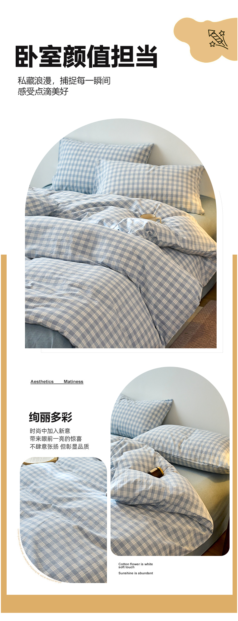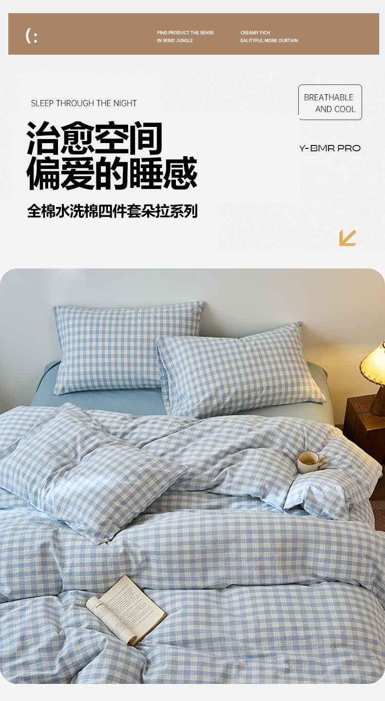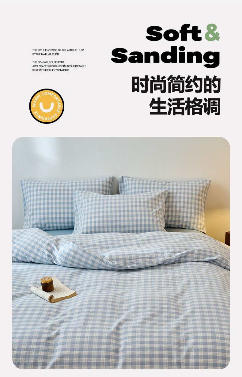 当前位置: 91家纺网 > 商品网购 > 床品套件 > 四件套 > 全棉普通四件套 > 兰紫橙家纺 2026新款全棉纯棉水洗棉四件套方格朵拉 方格-奶油兰