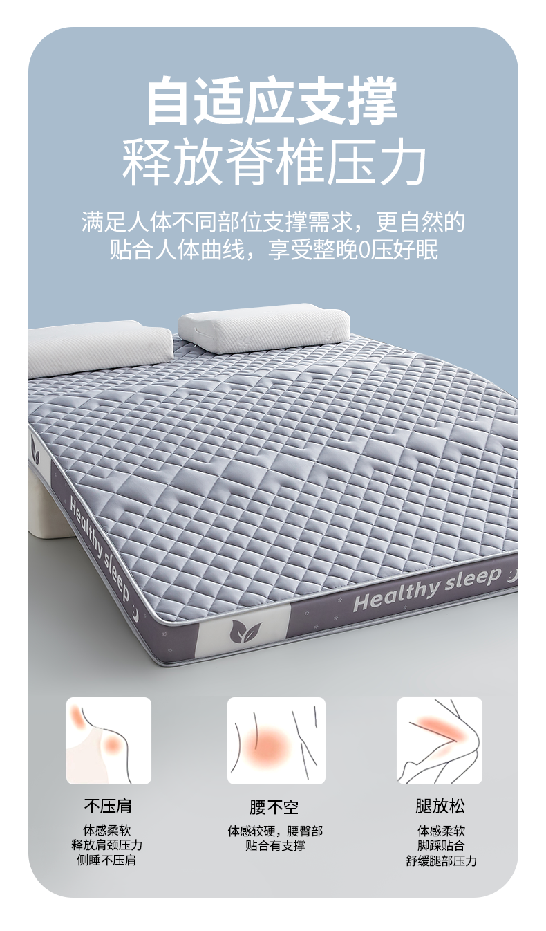 当前位置: 91家纺网 > 商品网购 > 床垫/床褥 > 普通床垫 > 月茶家纺 2026新款立体三色菱格乳胶海绵床垫 灰色6cm