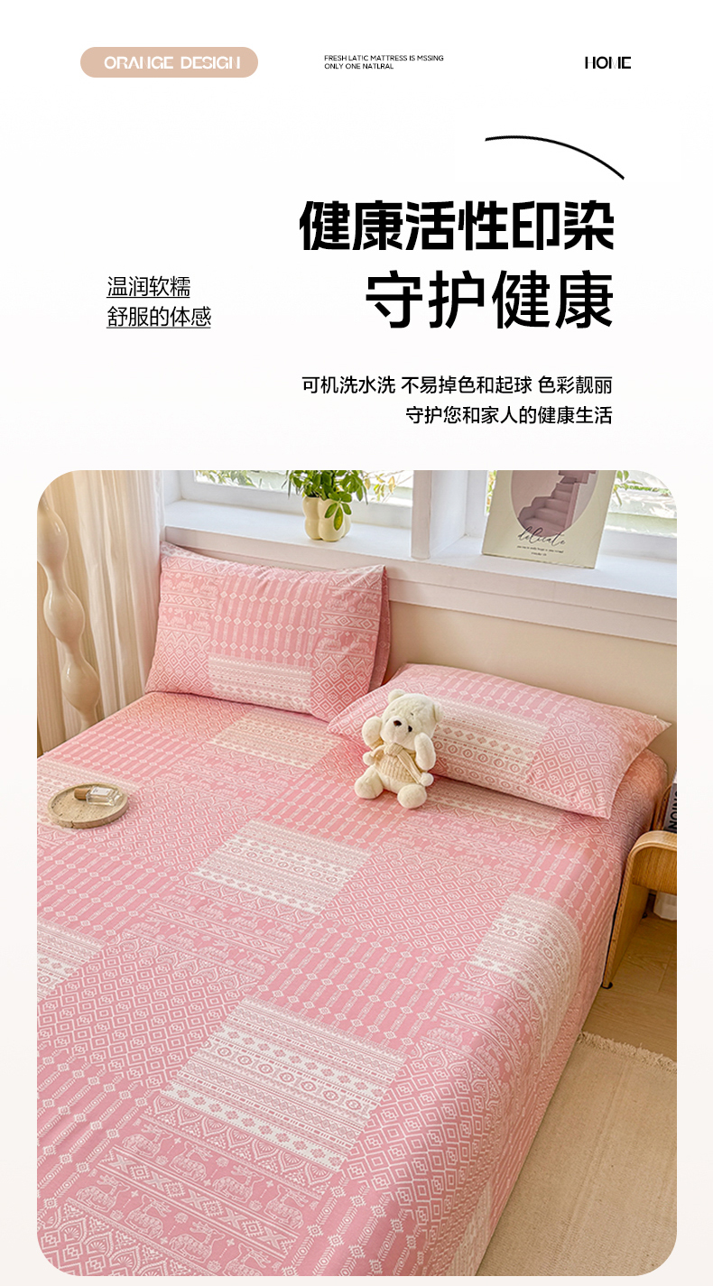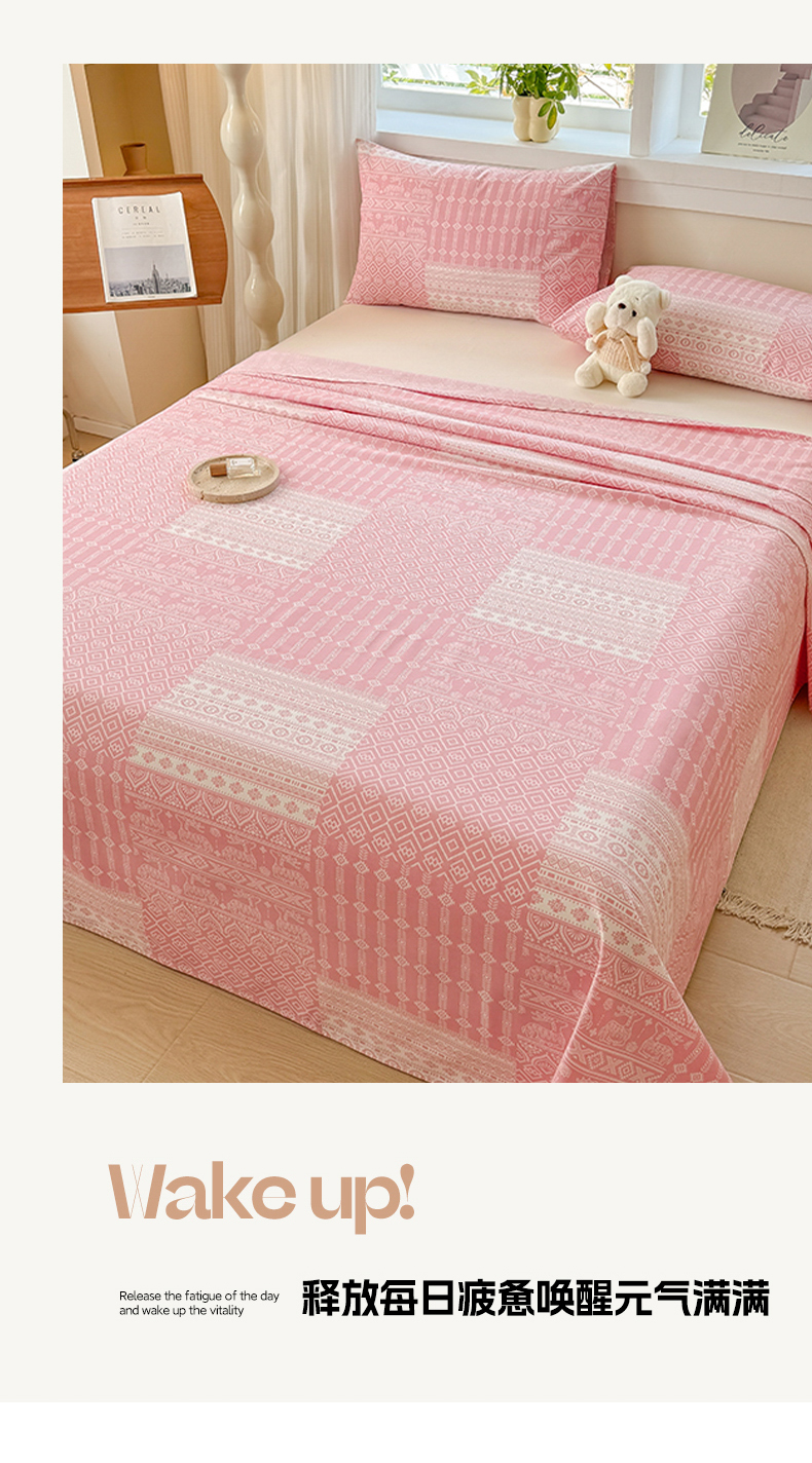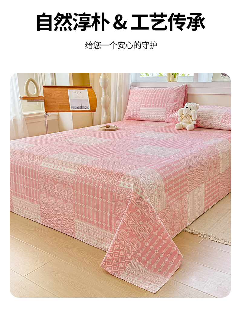 • 91家纺网 家纺一手货源 找家纺 爱彼家纺 2026新款全棉华夫格如意吉祥老粗布床单三件套 华夫格-吉祥-粉