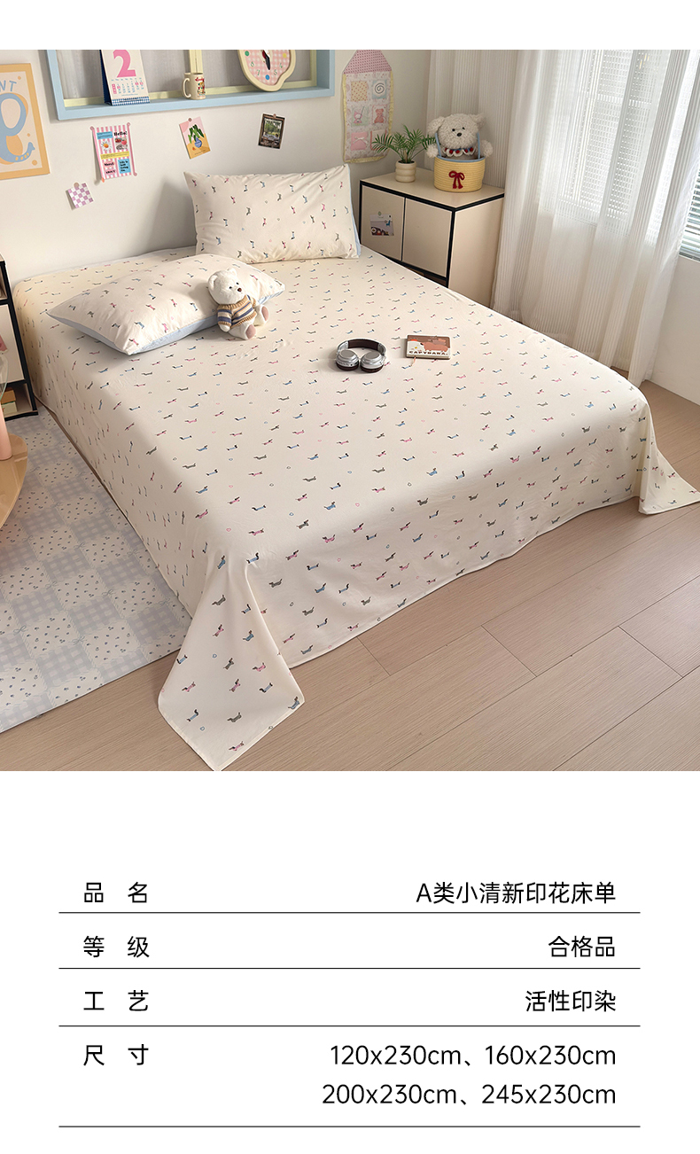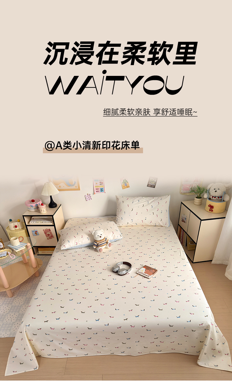• 91家纺网 家纺一手货源 找家纺 (总)沐芷 2026 【提供买家秀】A类单床单古法水洗仿棉 单人双人床单三件套,甜梦糖豆,星仔,巴黎甜心,白月光,豹纹音乐,波点汪语,彩虹跳跳糖,漫游小鱼,萌犬游记,萌物,迷你格-黄,迷你格-蓝,奶味圆饼,暖意小熊,樱桃物语