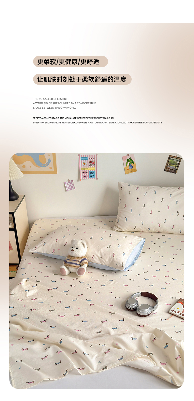 沐芷 2026 【提供买家秀】A类单床单古法水洗仿棉 单人双人床单三件套 萌犬游记