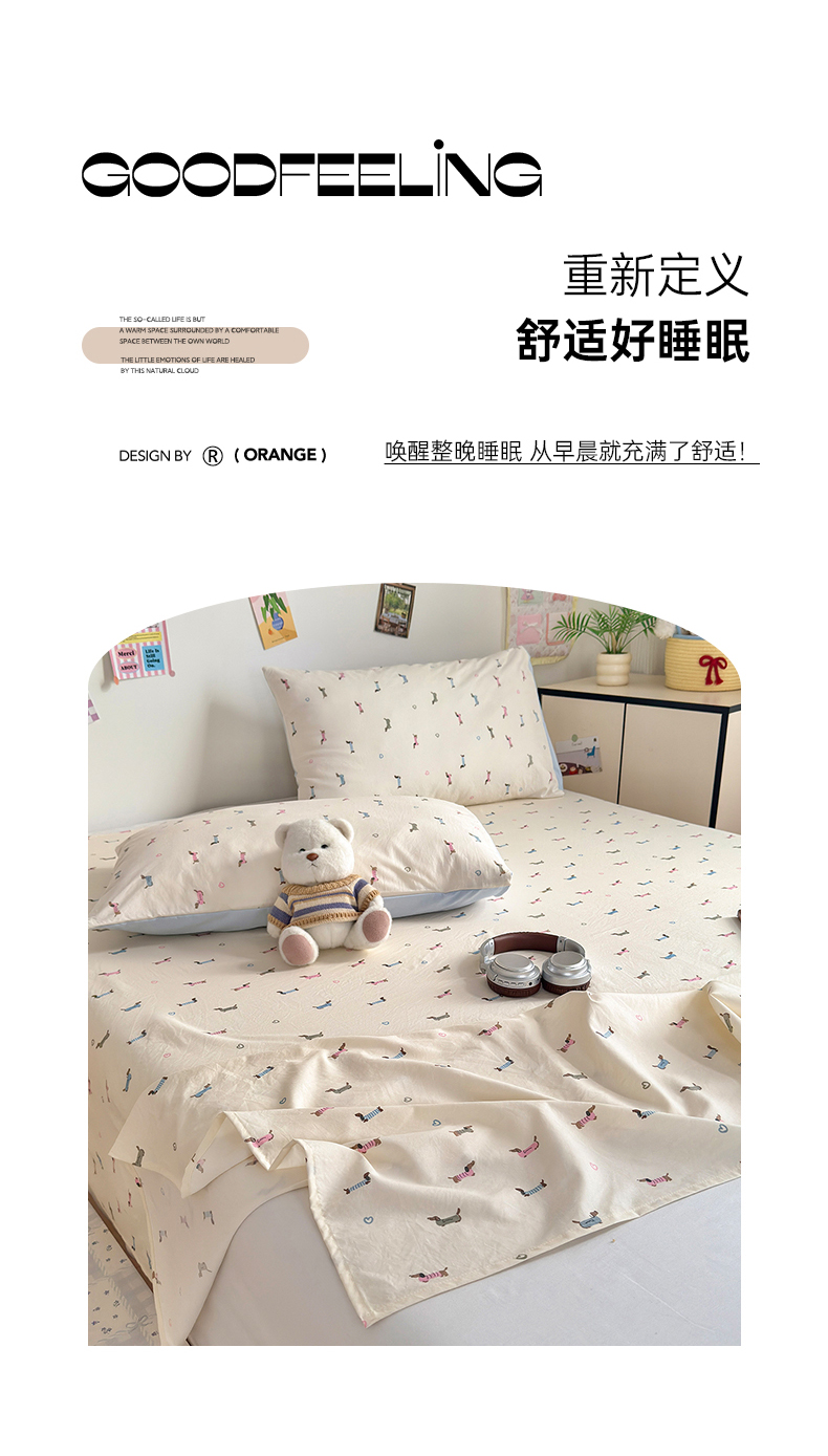 • 91家纺网 家纺一手货源 找家纺 沐芷 2026 【提供买家秀】A类单床单古法水洗仿棉 单人双人床单三件套 萌犬游记