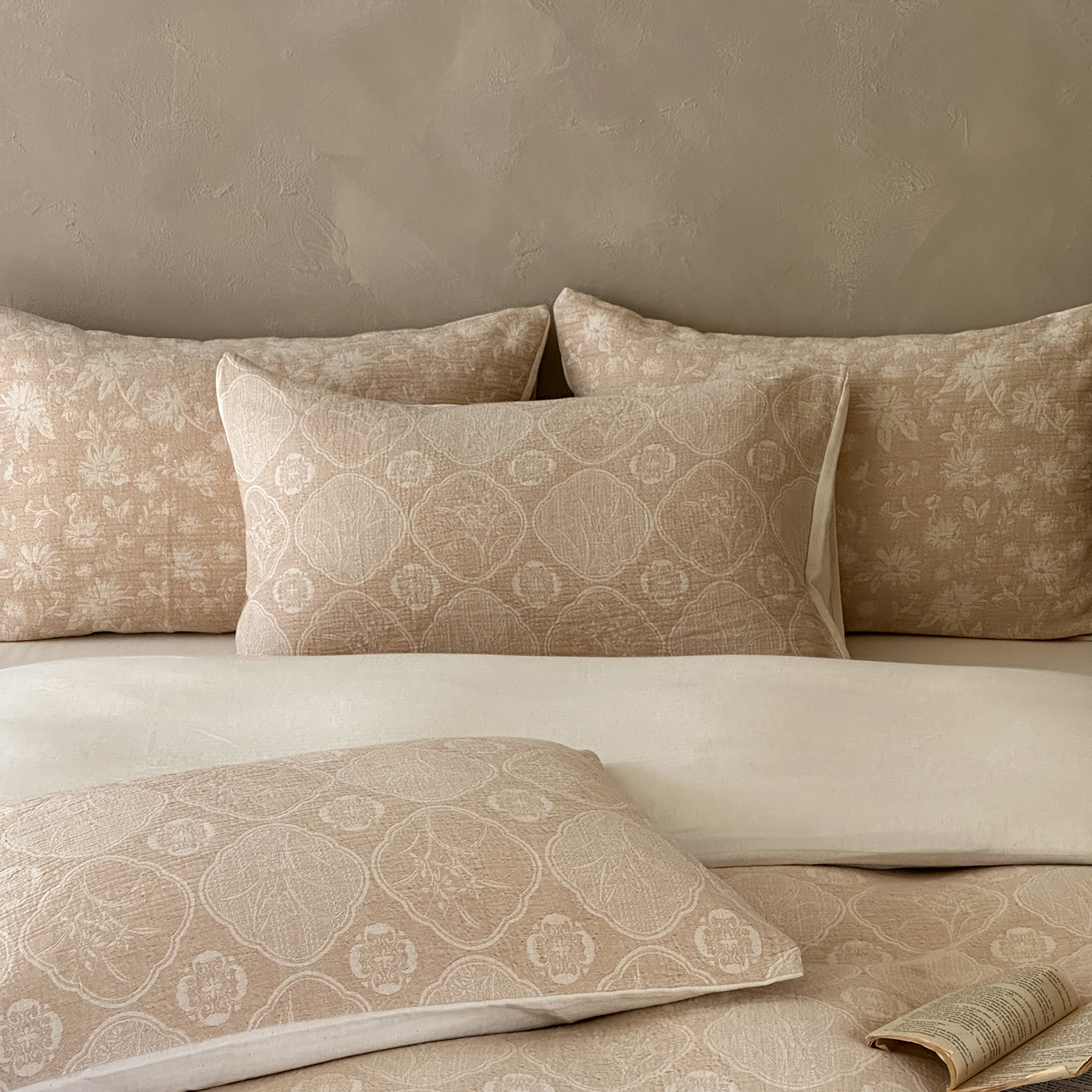 (总)爱丽丝 2026新品色织提花棉麻四件套-木兮花边款,木兮花边款