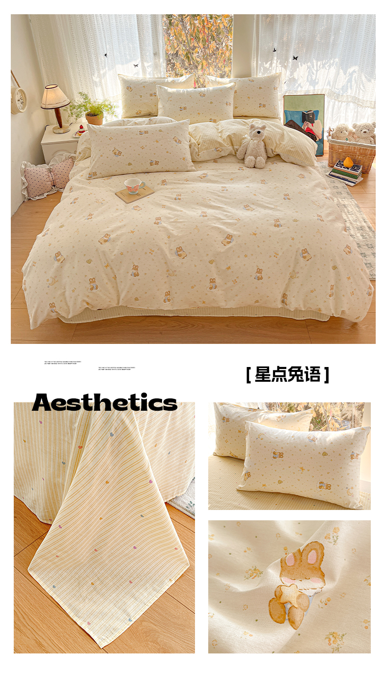 (总)吉象家纺 2026春夏新款全棉纯棉印花四件套,可爱星人,爱心小龙,鼻涕狗,嘟嘟小熊,花园梦梦,萌星,免兔野餐会,甜酱小猫(粉),兔兔梦境 米,熊熊时光,眼镜狗狗