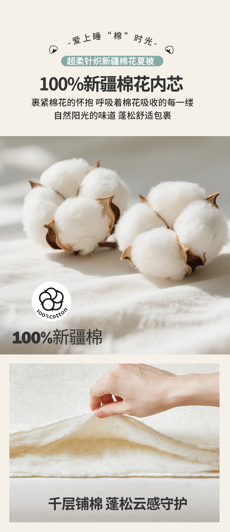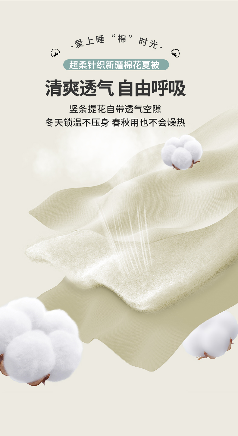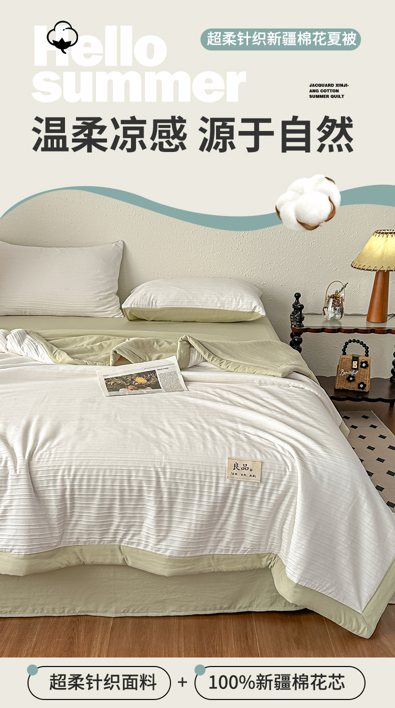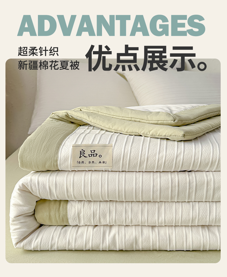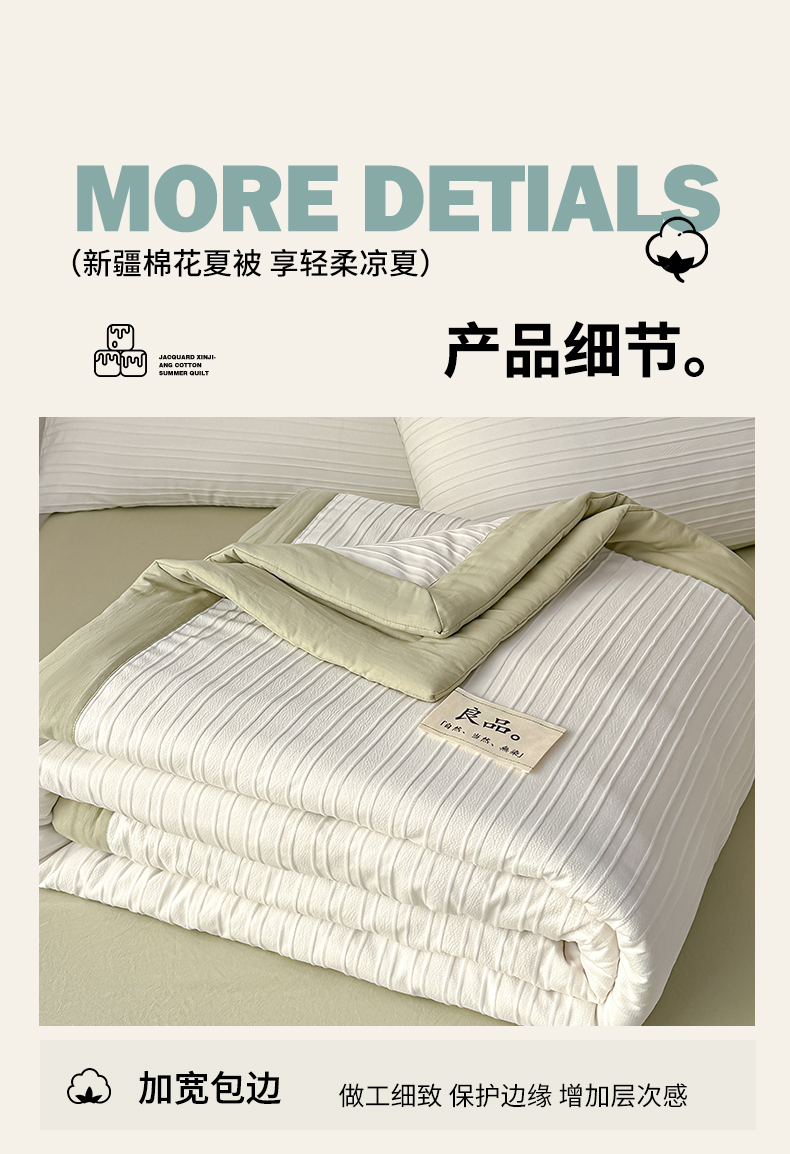 商品名称:尊妙被业 2026新款良品条白100%新疆棉花夏被 良品条白+绿