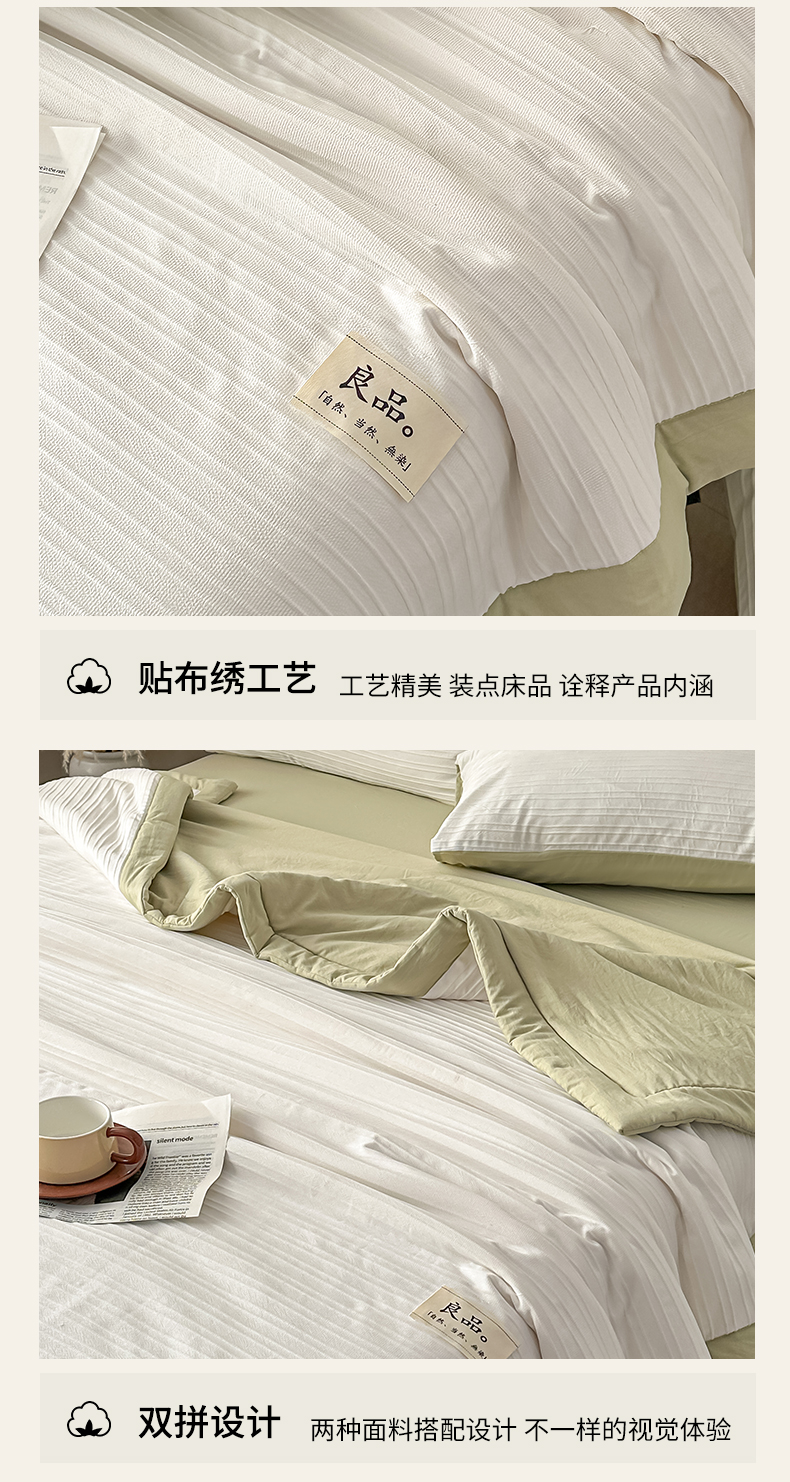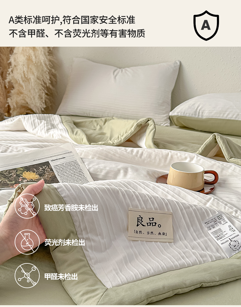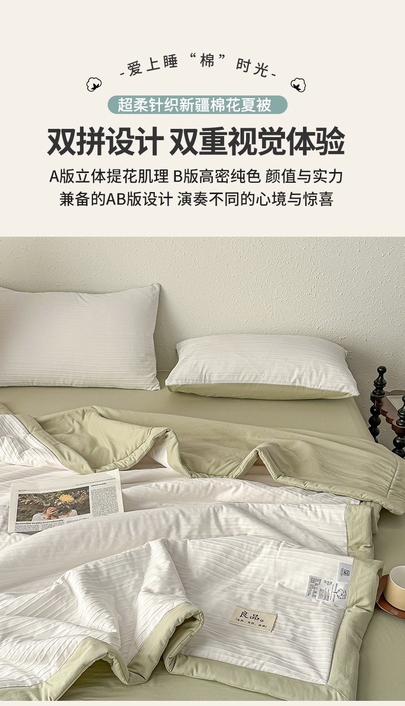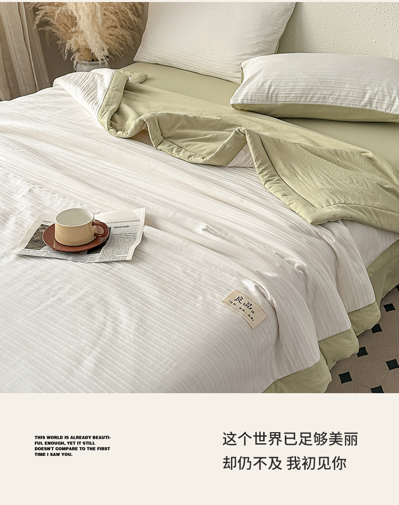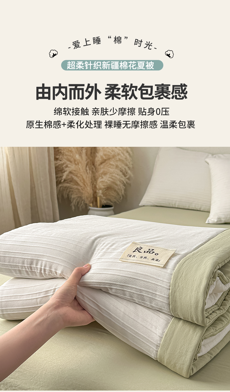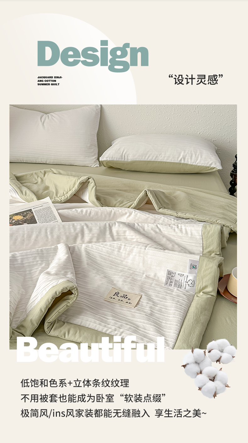 尊妙被业 2026新款良品条白100%新疆棉花夏被 良品条白+绿