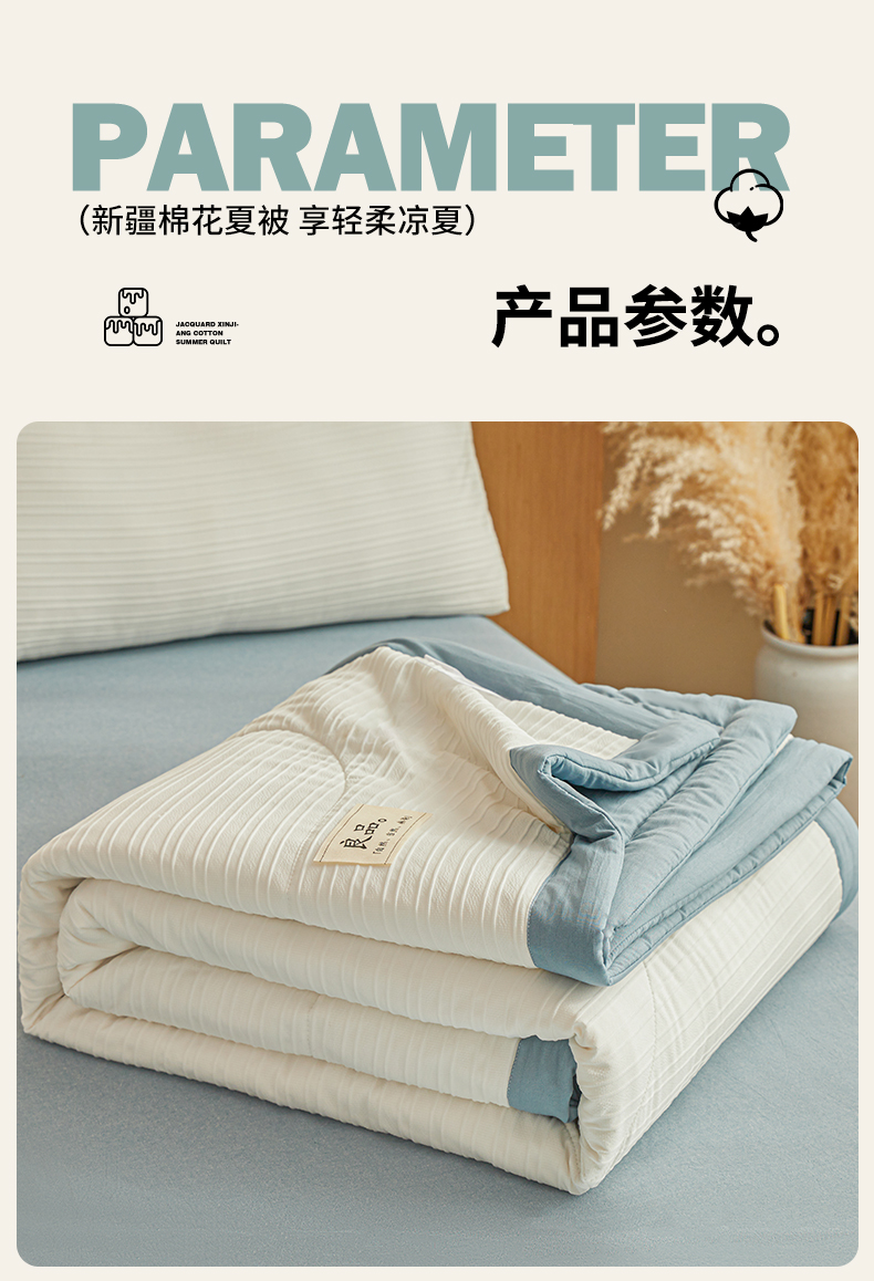 (总)尊妙被业 2026新款良品条白100%新疆棉花夏被,良品条白+粉,良品条白+咖,良品条白+蓝,良品条白+绿