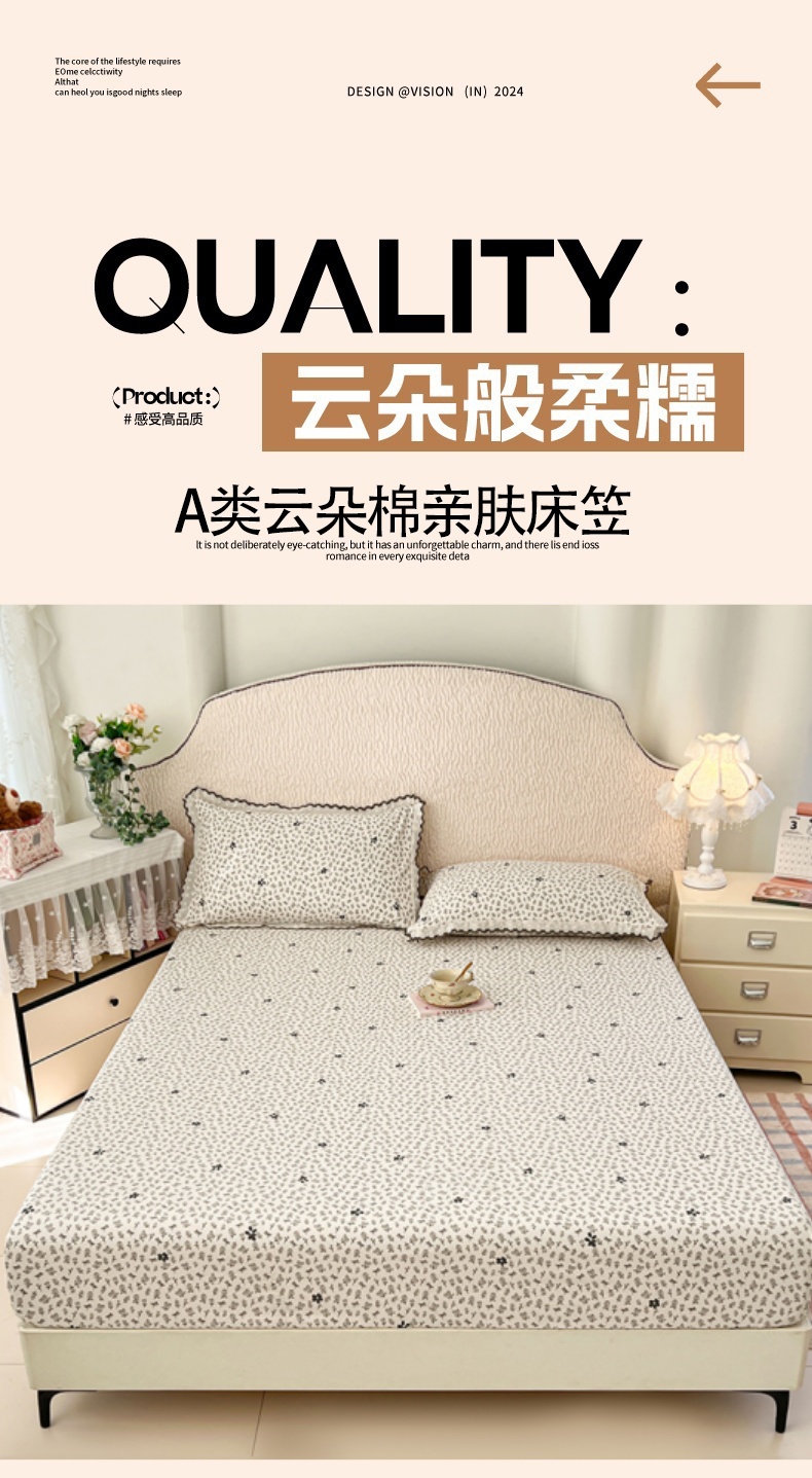 当前位置: 91家纺网 > 商品网购 > 床上用品 > 床笠 > 梦舒羽 2026新款A类云朵棉亲肤四季款床笠席梦思床罩全包床单三件套 花无意