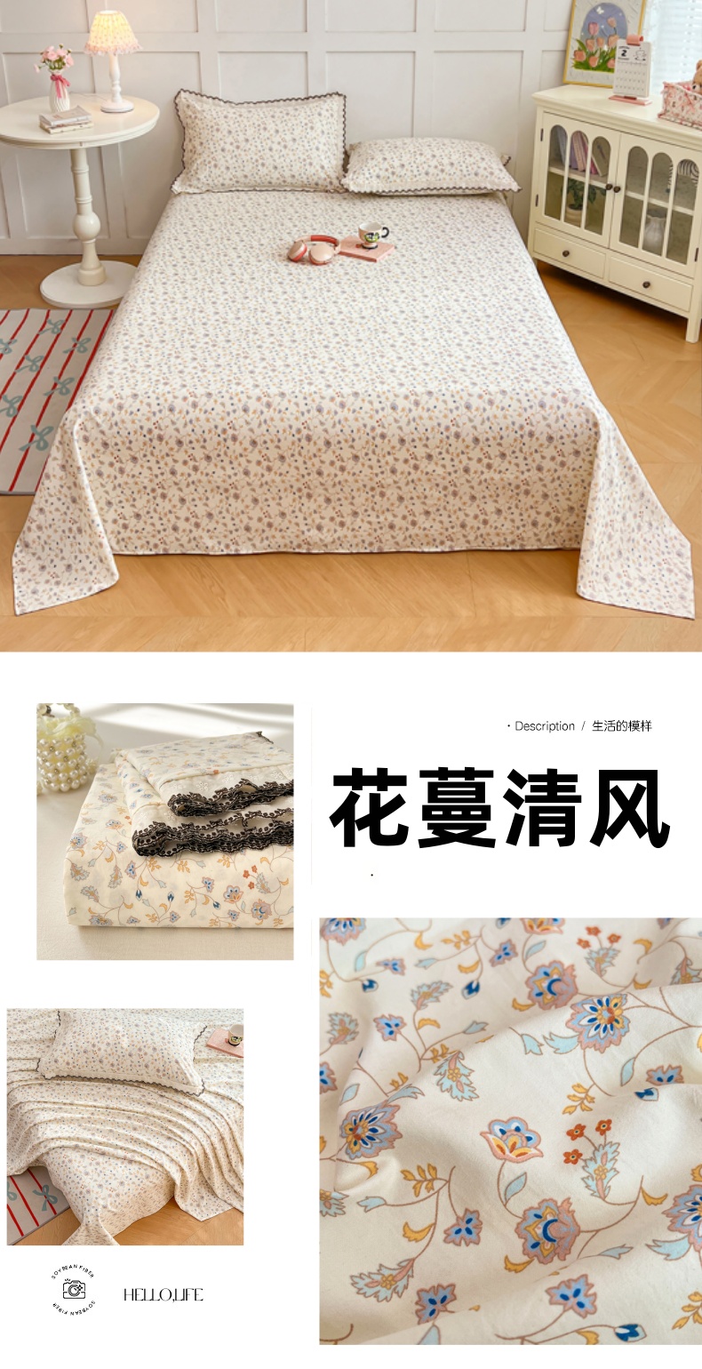 • 91家纺网 家纺一手货源 找家纺 梦舒羽 2026新款A类云朵棉床单亲肤四季款席梦思床罩全包床单三件套 花无意