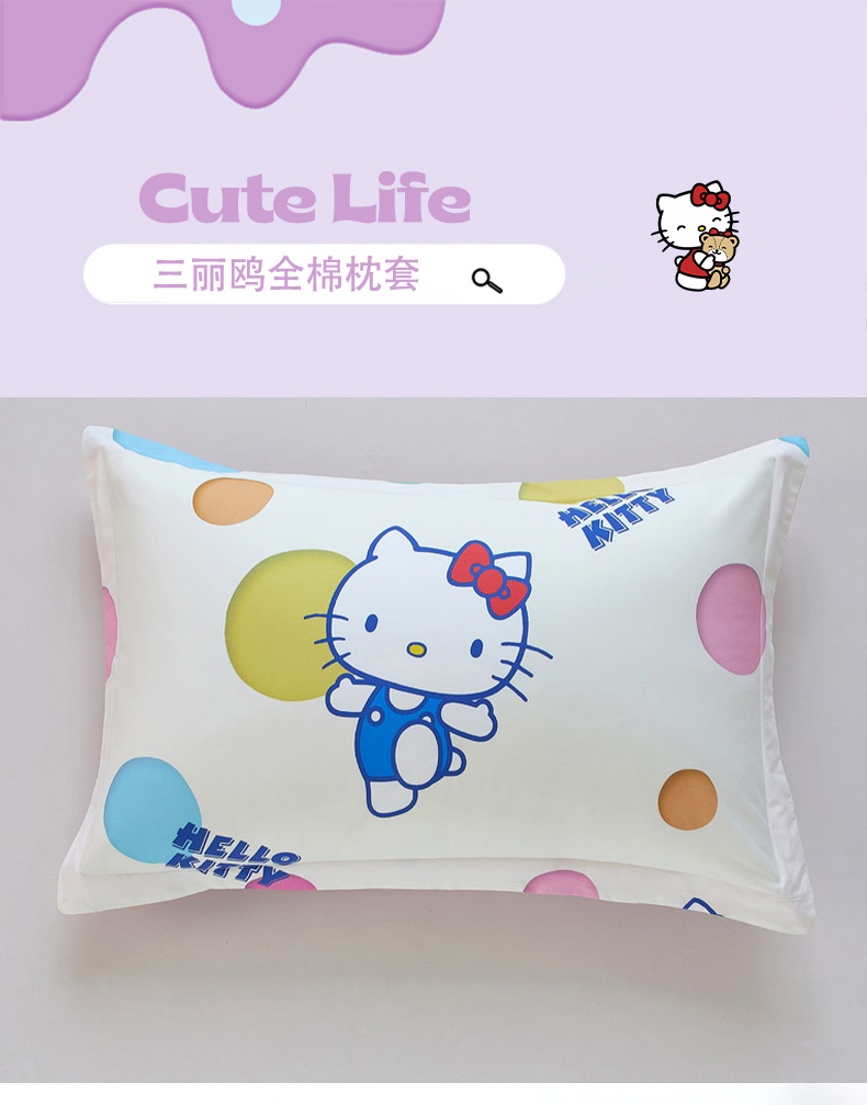 蘭菲家纺 2026新款全棉三丽欧印花卡通单品枕套 波点KT