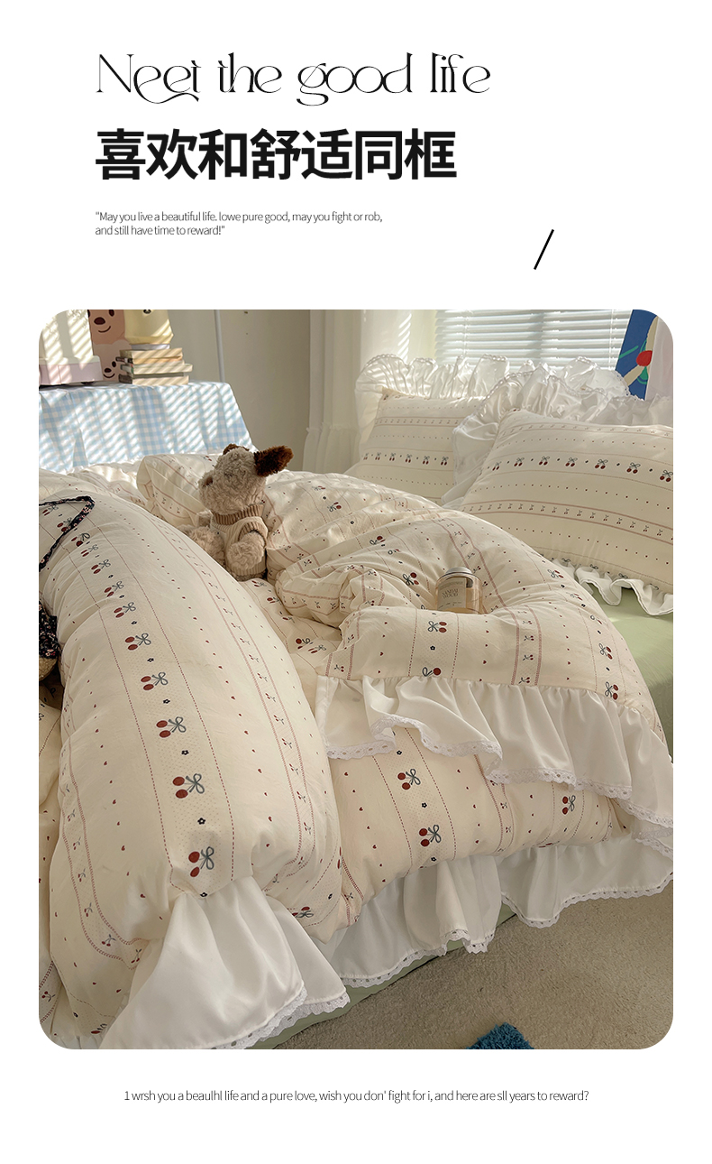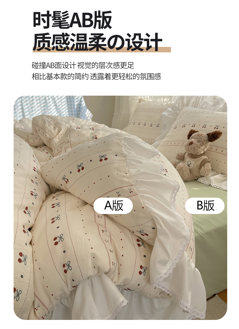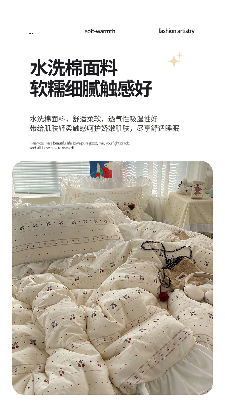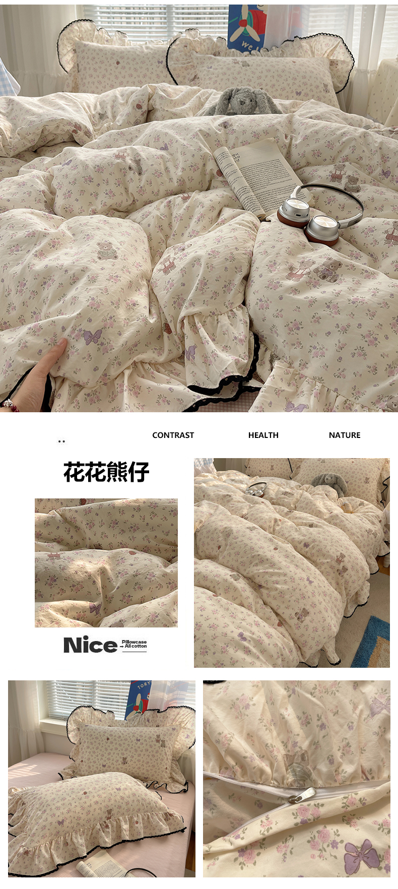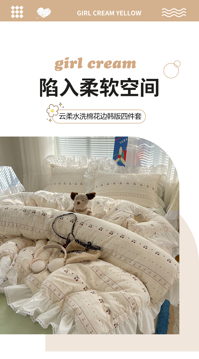 商品名称:(总)三朵家纺 2026新款云柔水洗棉大花边A类韩版四件套