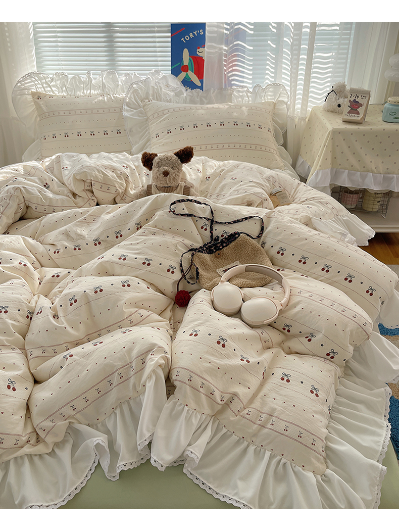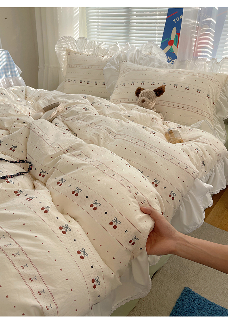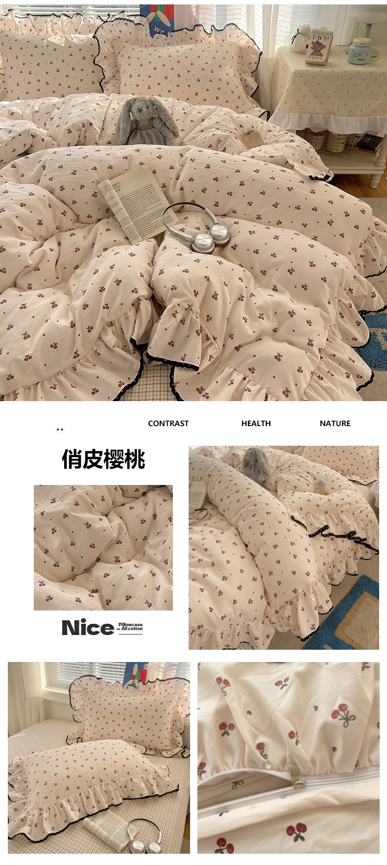 (总)三朵家纺 2026新款13070可爱INS风全棉四件套,芭蕾蝴蝶结,甜心樱桃,小樱桃-粉