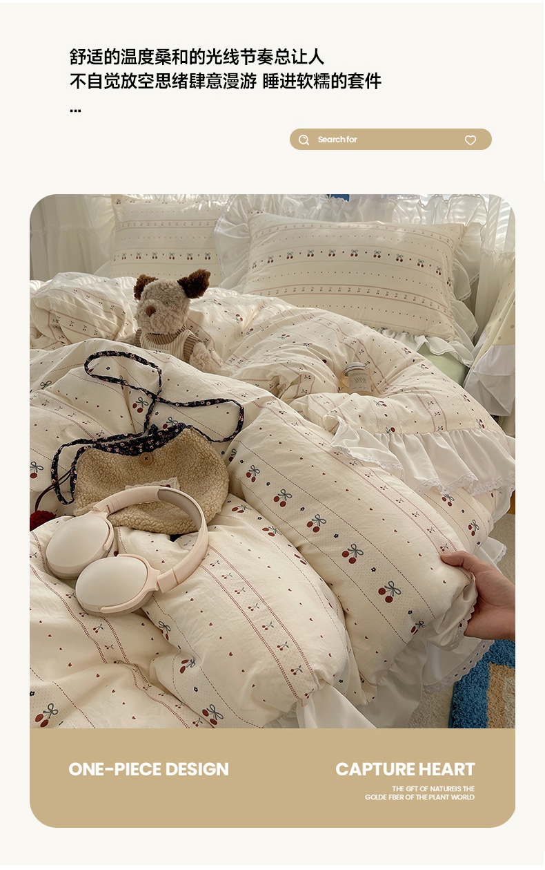 (总)三朵家纺 2026新款A类云柔水洗棉韩版法式花边云朵棉四件套,春夕集,罗逸维绿,如漫,惜花灰绿,赫拉