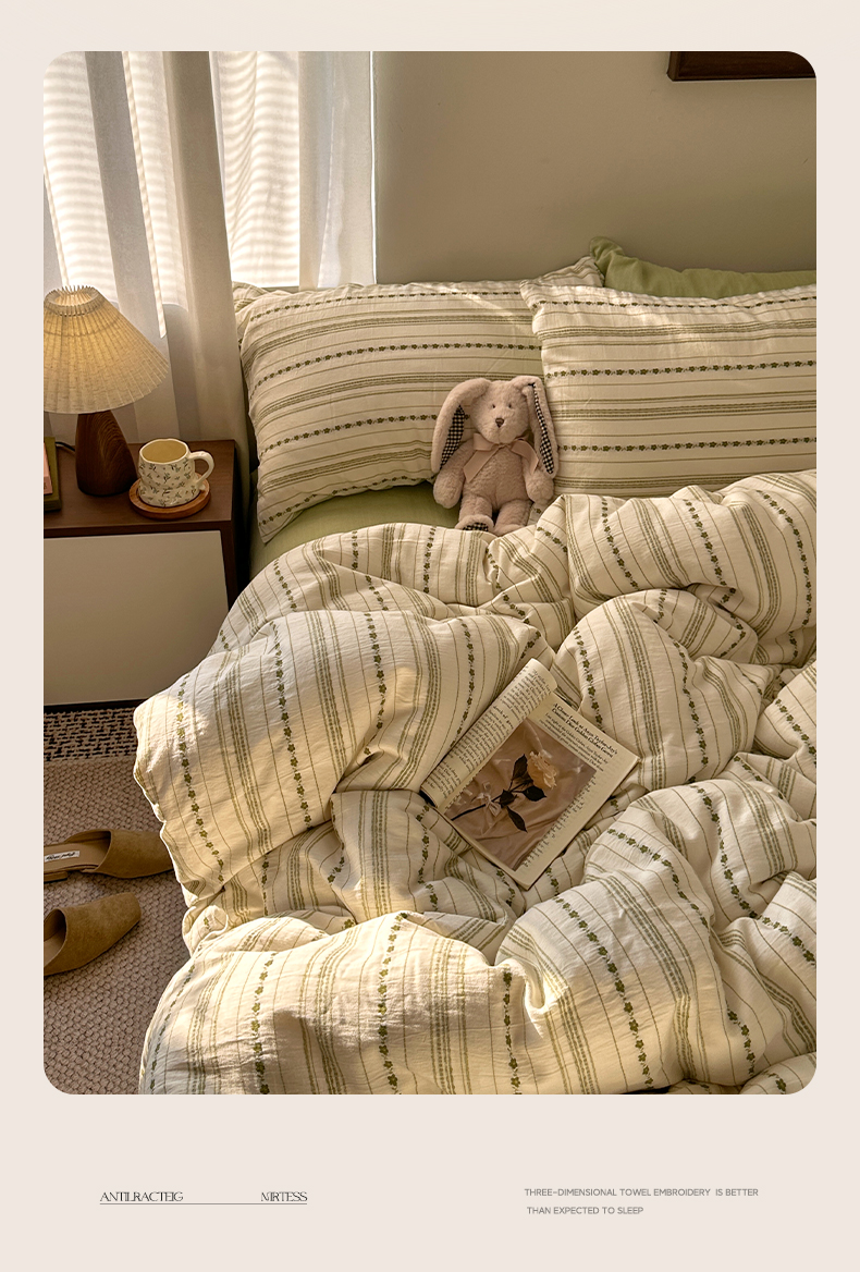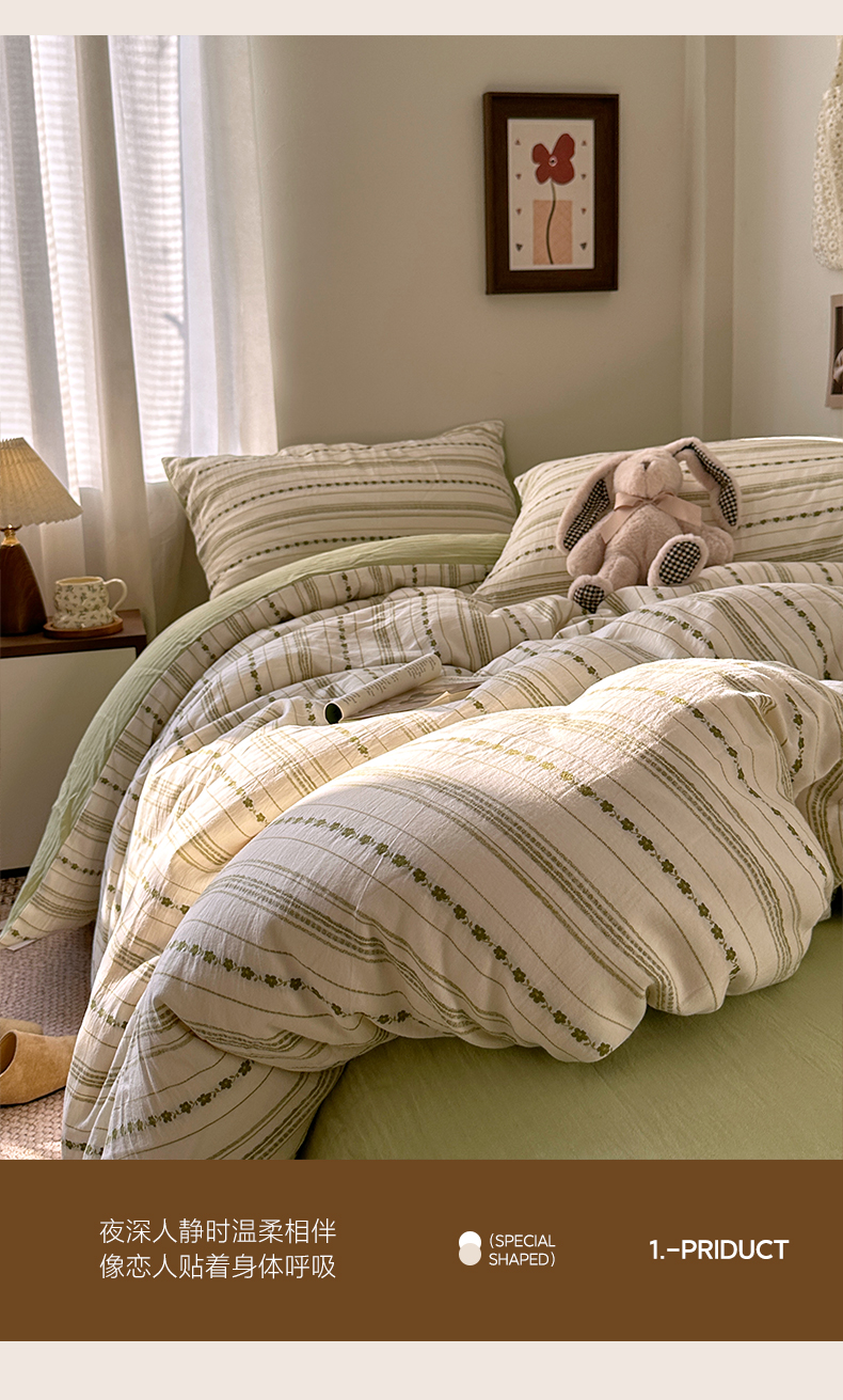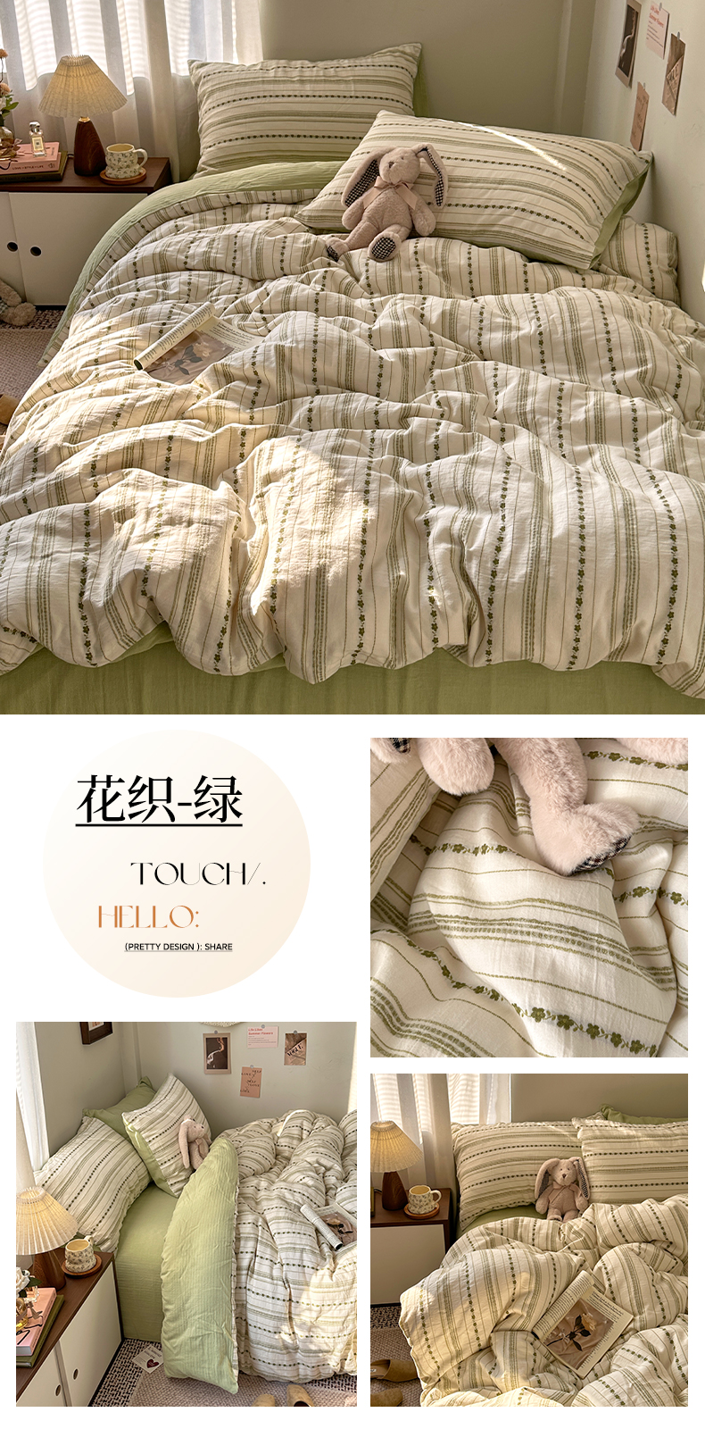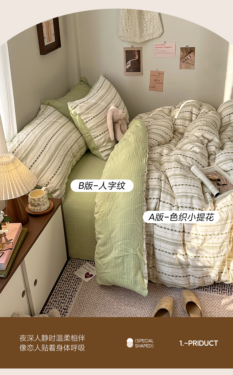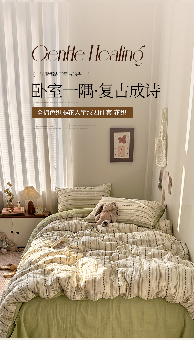 当前位置: 91家纺网 > 商品网购 > 床品套件 > 四件套 > 全棉普通四件套 > 艾咪-Amy ntmy 2026新款全棉纯棉色织提花人字纹四件套-花织 花织-绿