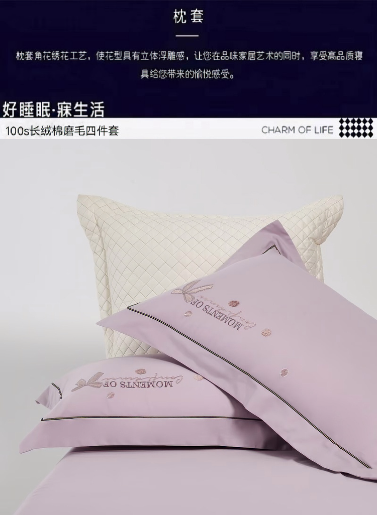 梦丝语家纺秋冬婚庆送礼居家高端100支长绒棉磨毛平绣加毛巾绣四件套