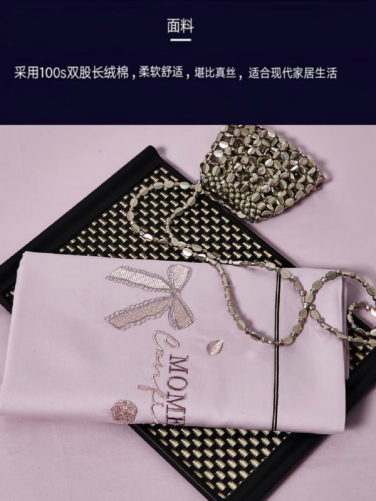2025米兰达糸列50双股100支长绒棉轻奢高端简约绣花圆角款四件套新品 ,米兰达-粉,米兰达-玉,米兰达-蓝,米兰达-香槟,米兰达-绿,米兰达-紫灰