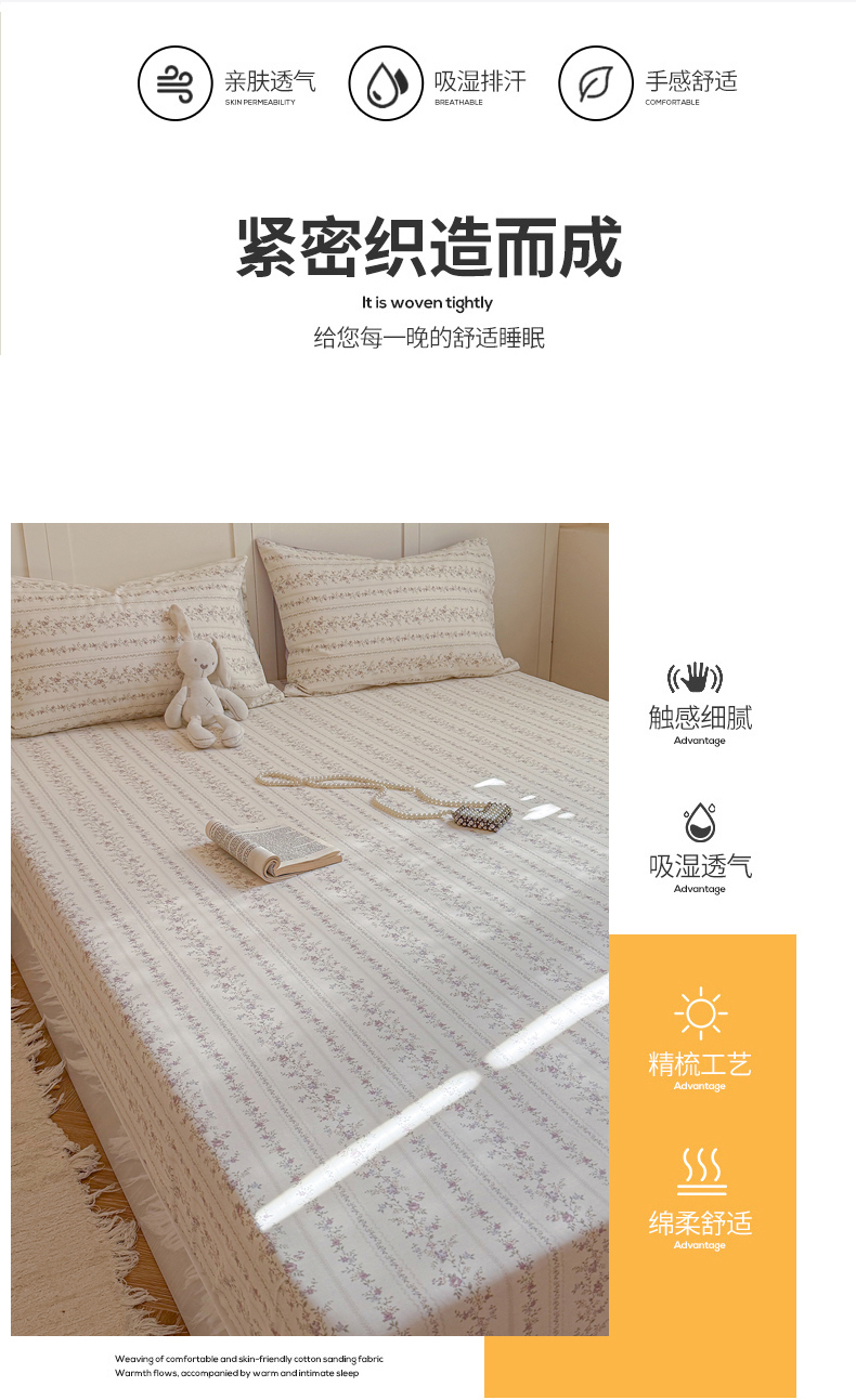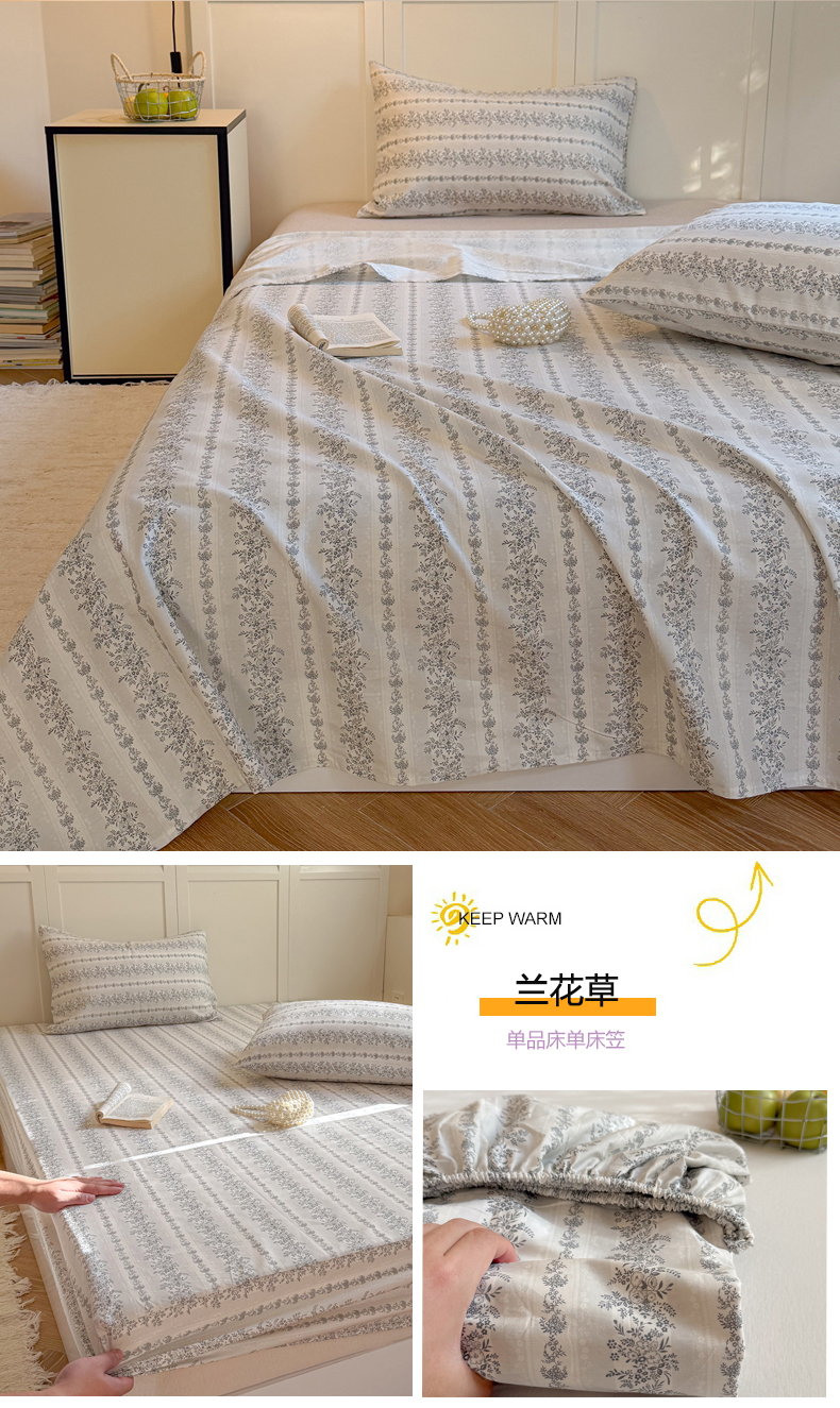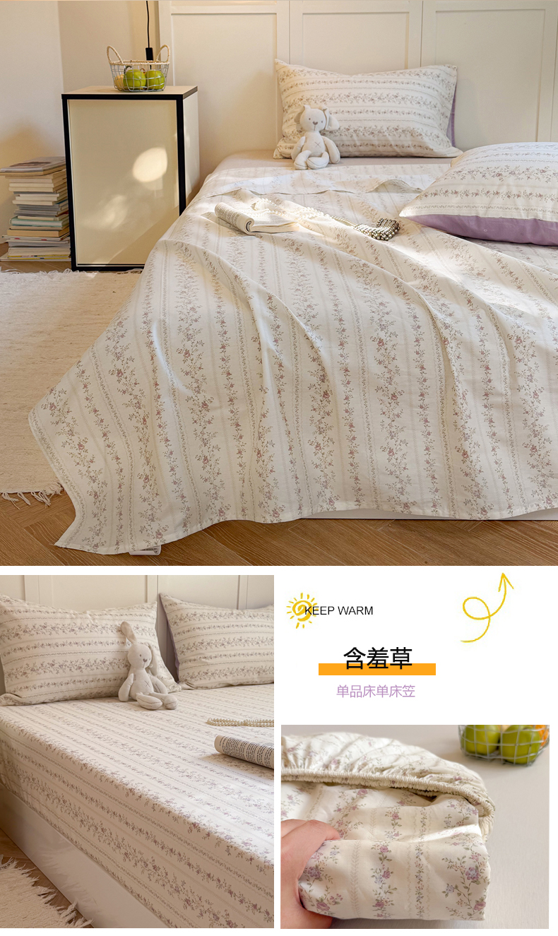 • 91家纺网 家纺一手货源 找家纺 麦伦家居 2026新款卡通小清新全棉纯棉单床单床笠床单床笠单件单品床单床笠 含羞草