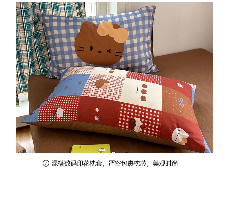 桃子家居 2026新款纯棉混搭大版数码印花枕套小清新猫咪可爱系列四件套 棉混搭-可可布丁猫