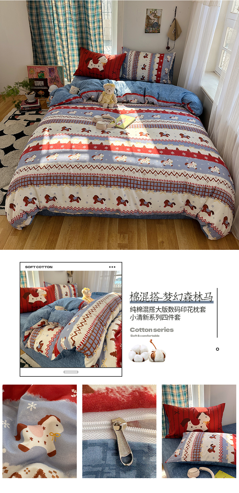 (总)桃子家居 2026新款纯棉混搭大版数码印花枕套小清新猫咪可爱系列四件套,棉混搭-彩虹马卡龙,棉混搭-红格幸运星,棉混搭-可可布丁猫,棉混搭-梦幻森林马,棉混搭-奶糖可可猫,棉混搭-苹果哈曼猫,棉混搭-甜美童话狗,棉混搭-甜心软糖猫