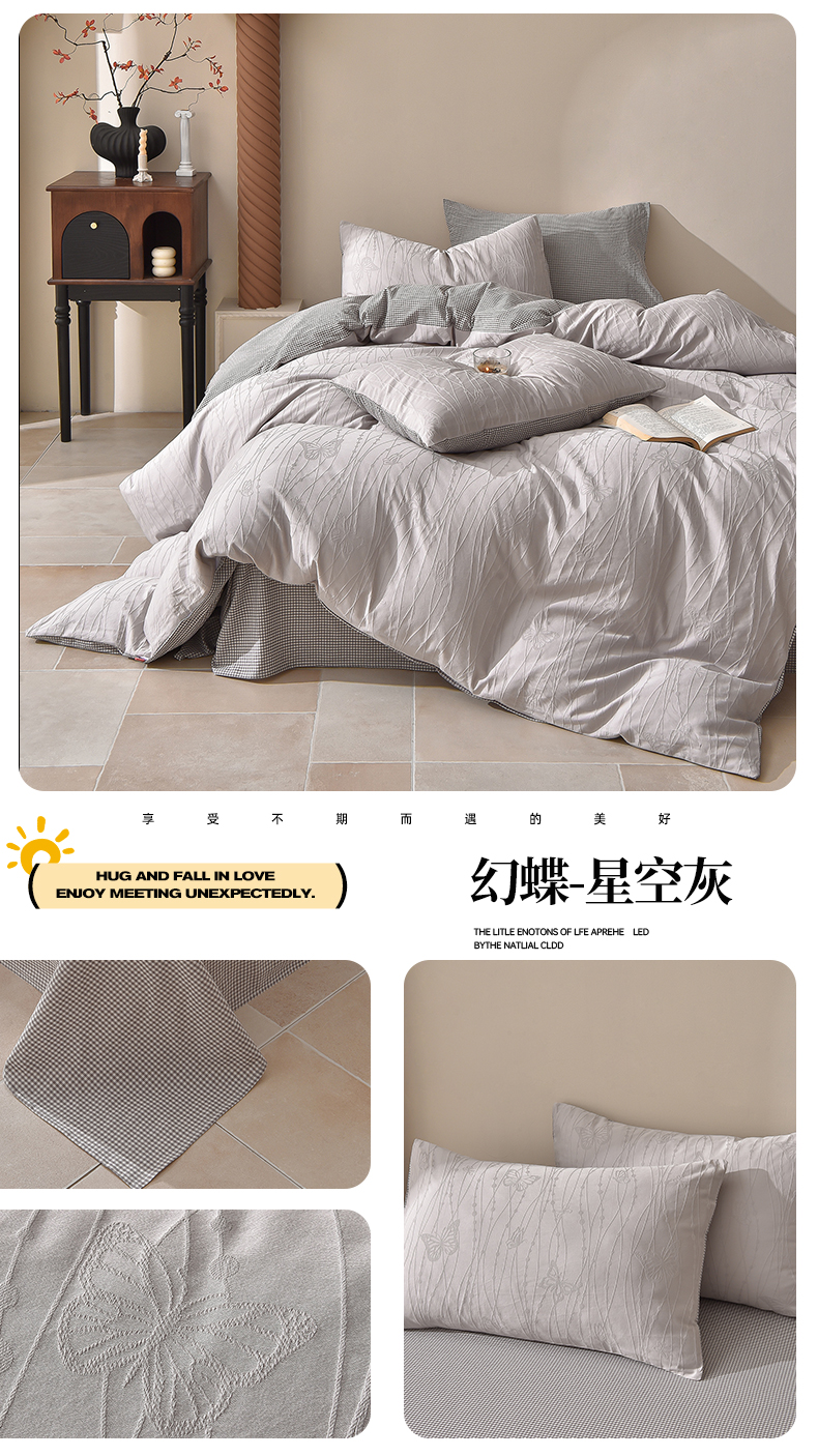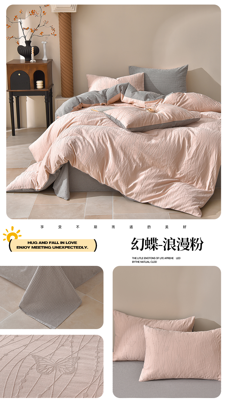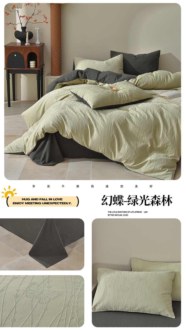 (总)炫拼家纺 2026新款A类60支水洗棉立体浮雕提花全棉四件套-幻蝶系列,幻蝶-绿光森林,幻蝶-浪漫粉,幻蝶-梦幻紫,幻蝶-奶绿,幻蝶-星空灰,幻蝶-中国红