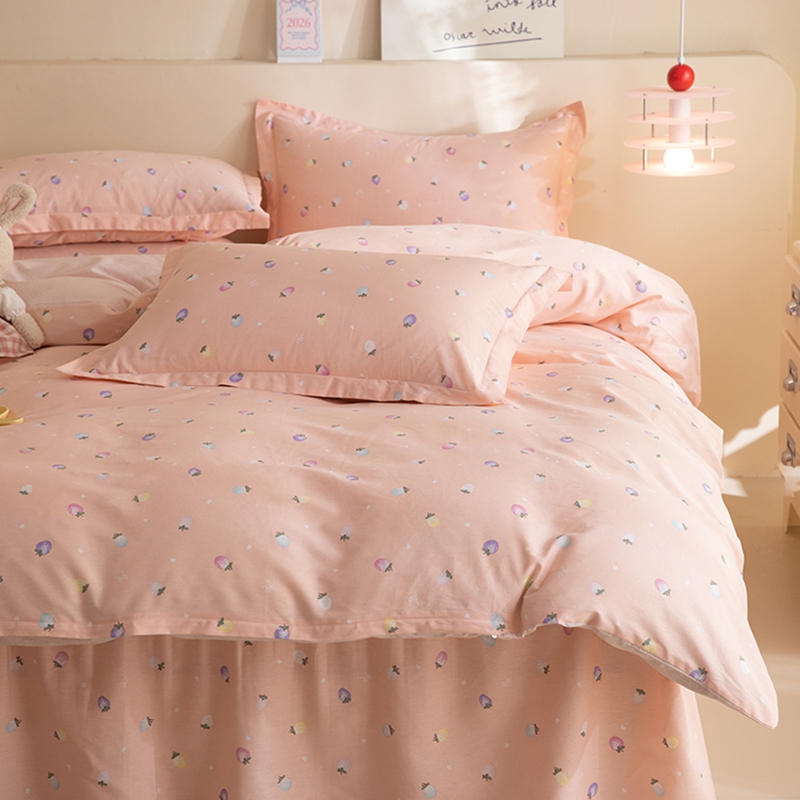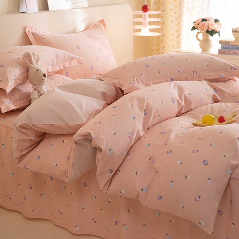 当前位置: 91家纺网 > 商品网购 > 床品套件 > 四件套 > 全棉普通四件套 > 八十八家纺 2025新款全棉12868床裙款四件套 奶油草莓