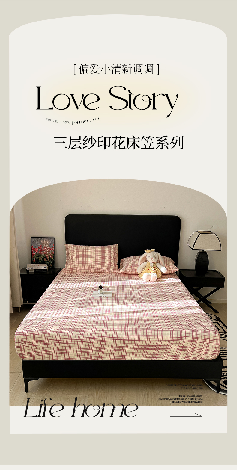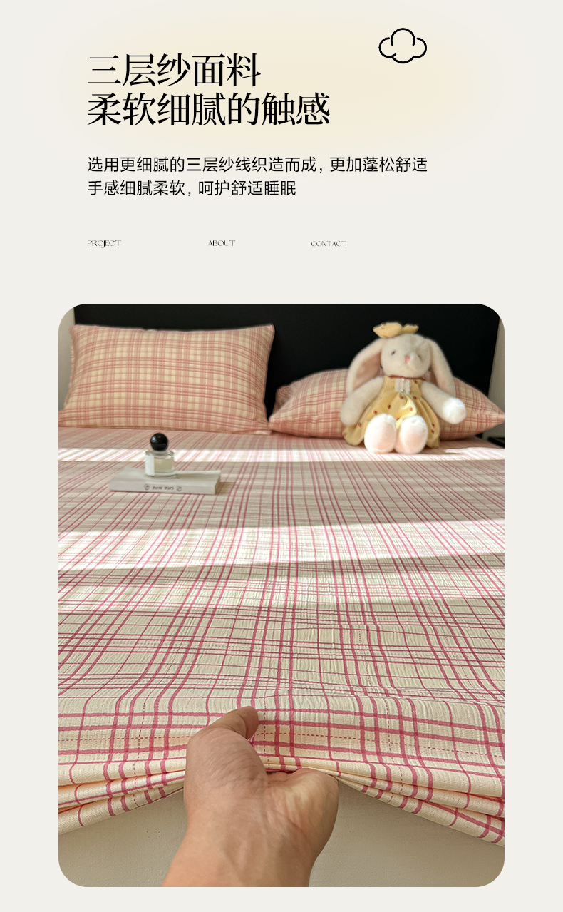 韩巢家纺 2026新款三层纱单床笠热销款防滑床笠单件 梅森-粉